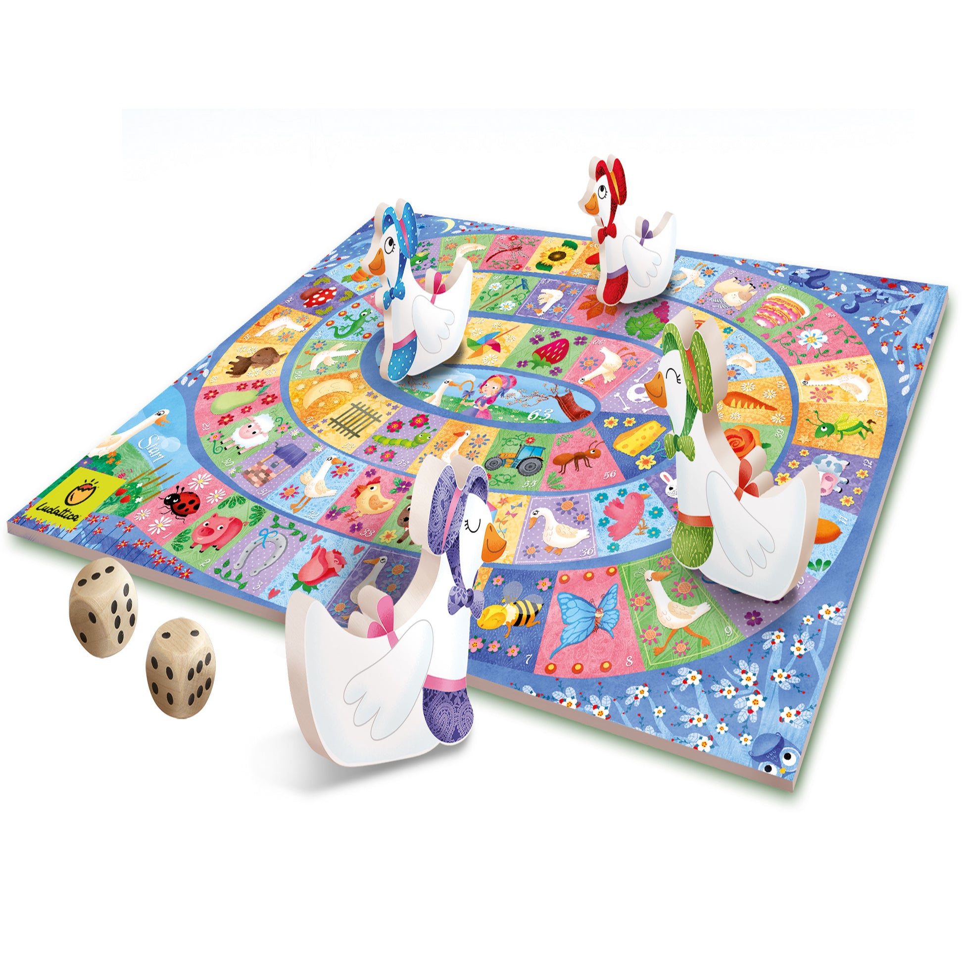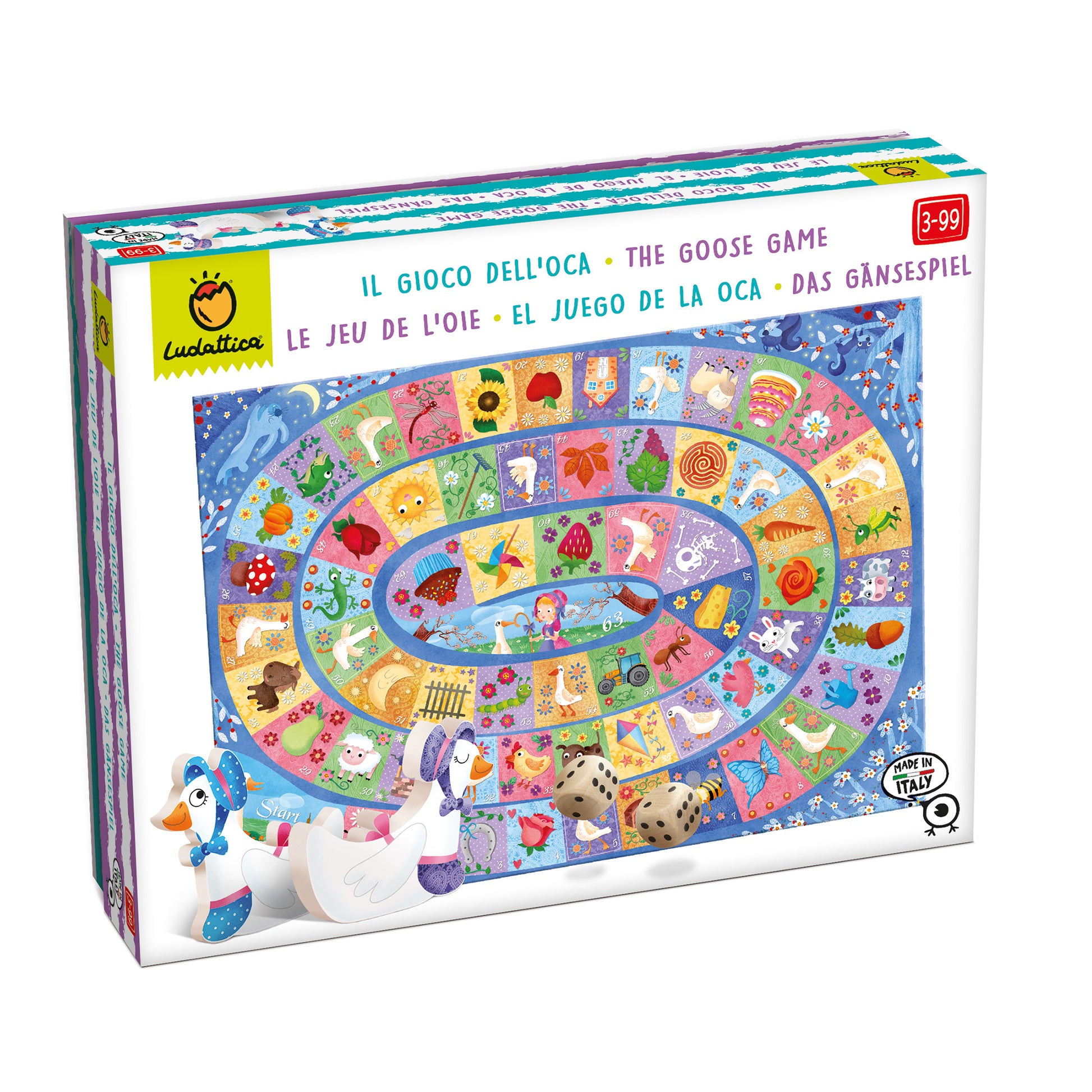 Un clásico inolvidable que le gusta a todo el mundo, mayores y pequeños. El tablero está cuidadosamente ilustrado y las ocas marcadores son de madera.