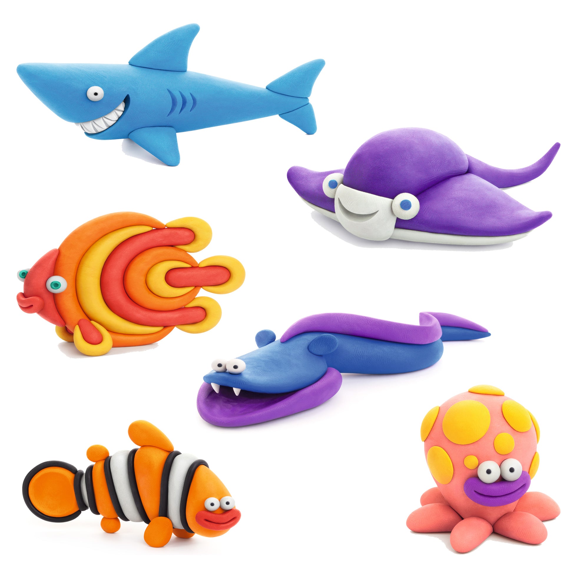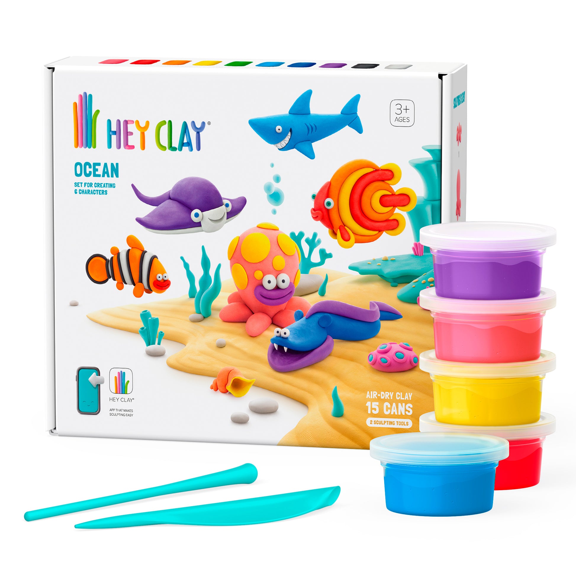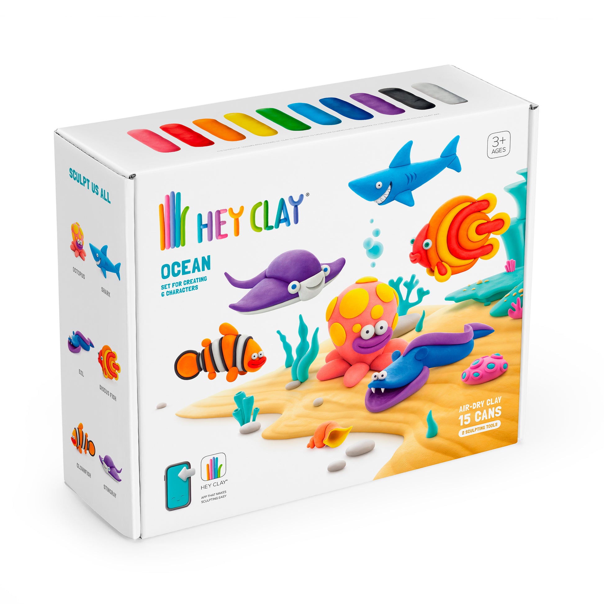 Oceano: Tiburón, Mantaraya, Pez Disco, Anguila, Pez Payaso, Pulpo 15 Potes - Hey Clay