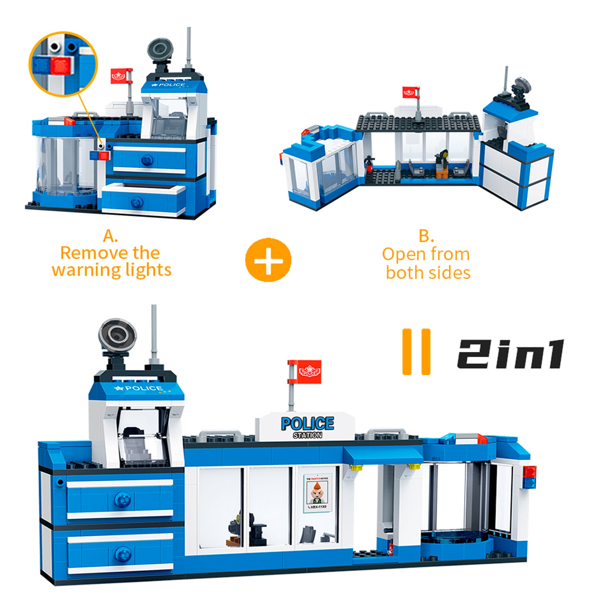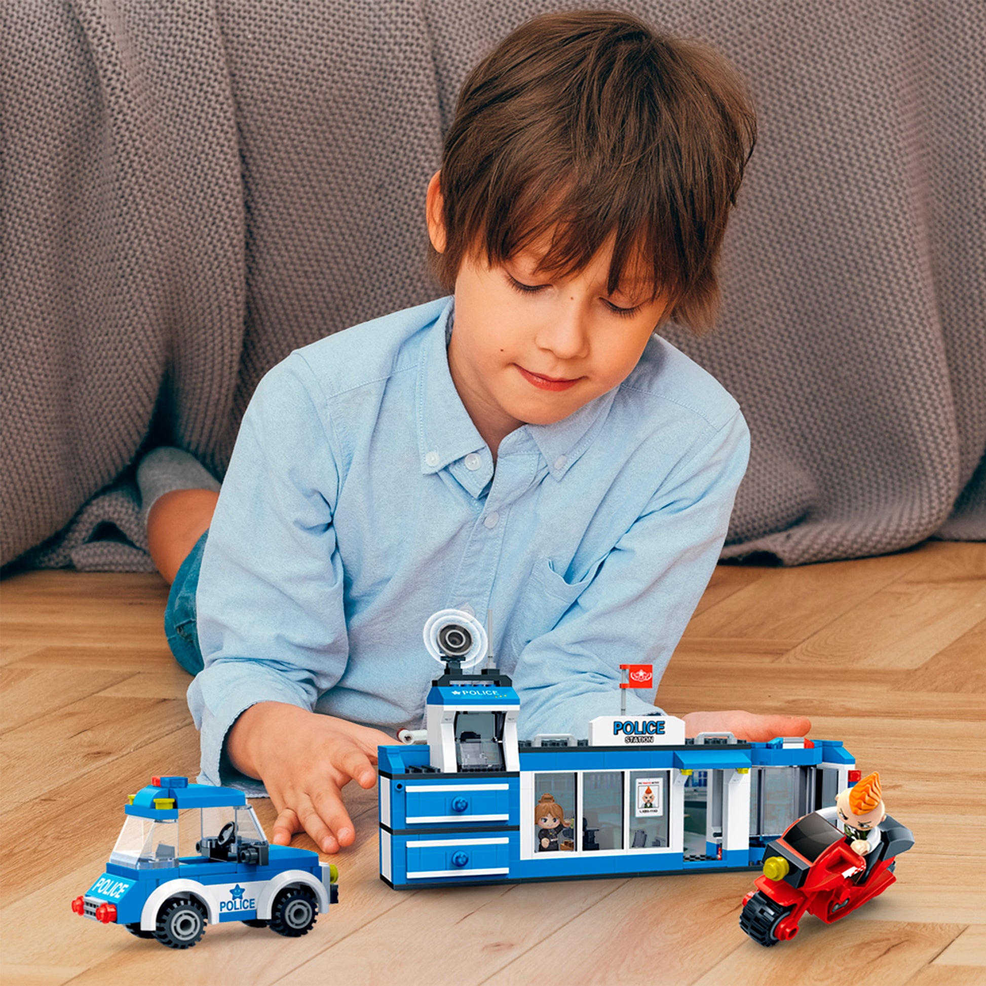 Con este constructor podrás construir una comisaría de policía para un juego o tu pequeño alumno – amante de la profesión policial – podrá recoger y ordenar productos químicos, clips y más material de oficina utilizándolo como organizador de escritorio. Con la ayuda de 561 elementos para montar, el niño sólo podrá construir, lo que elija. Apilando el constructor en la posición desplegada, hay una sala de observación y una sala de interrogatorio. Para hacerlo aún más realista, en el kit se incluyen un motor y un coche de policía. El constructor es apto para niños mayores de 6 años. Con él, el niño jugará desarrollando su pensamiento lógico, imaginación, coordinación y visión del color.