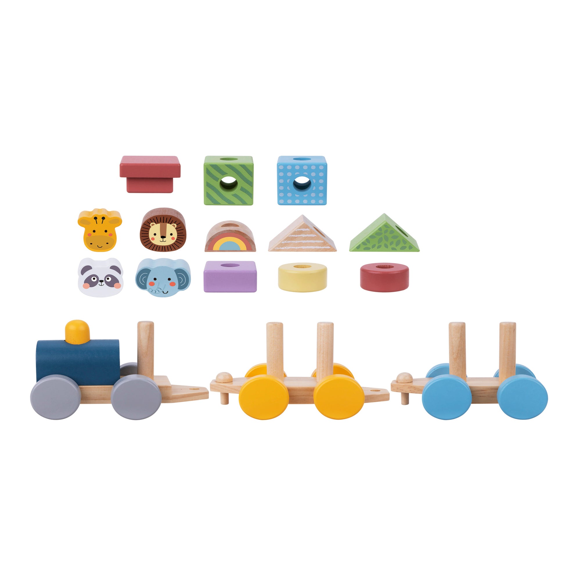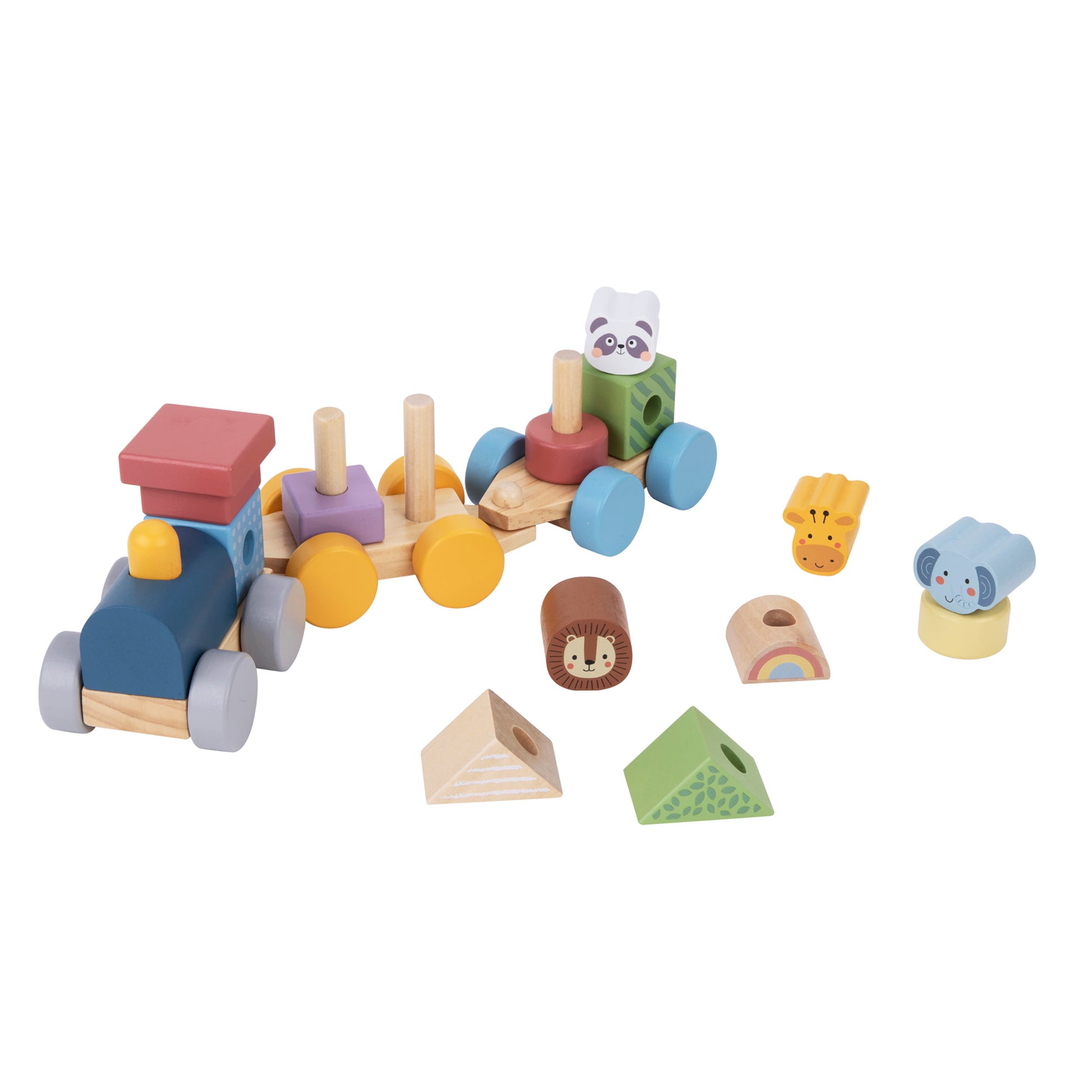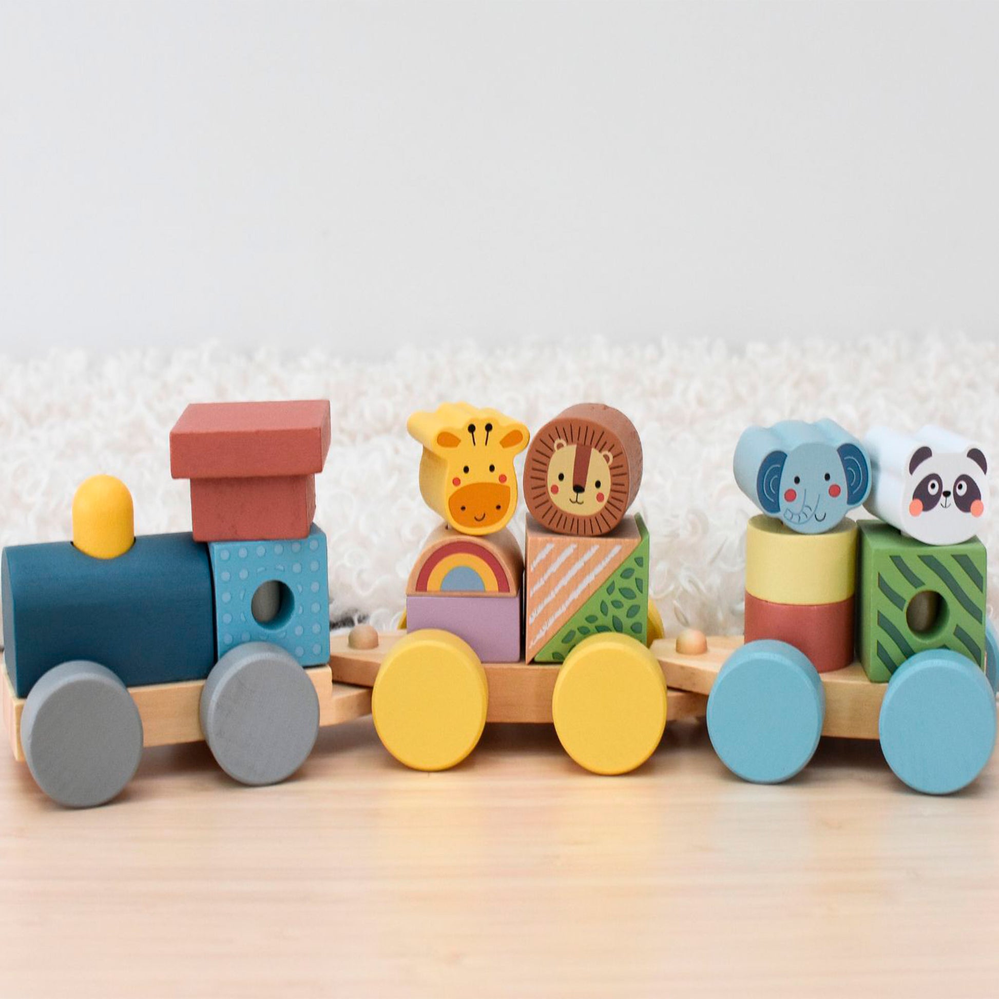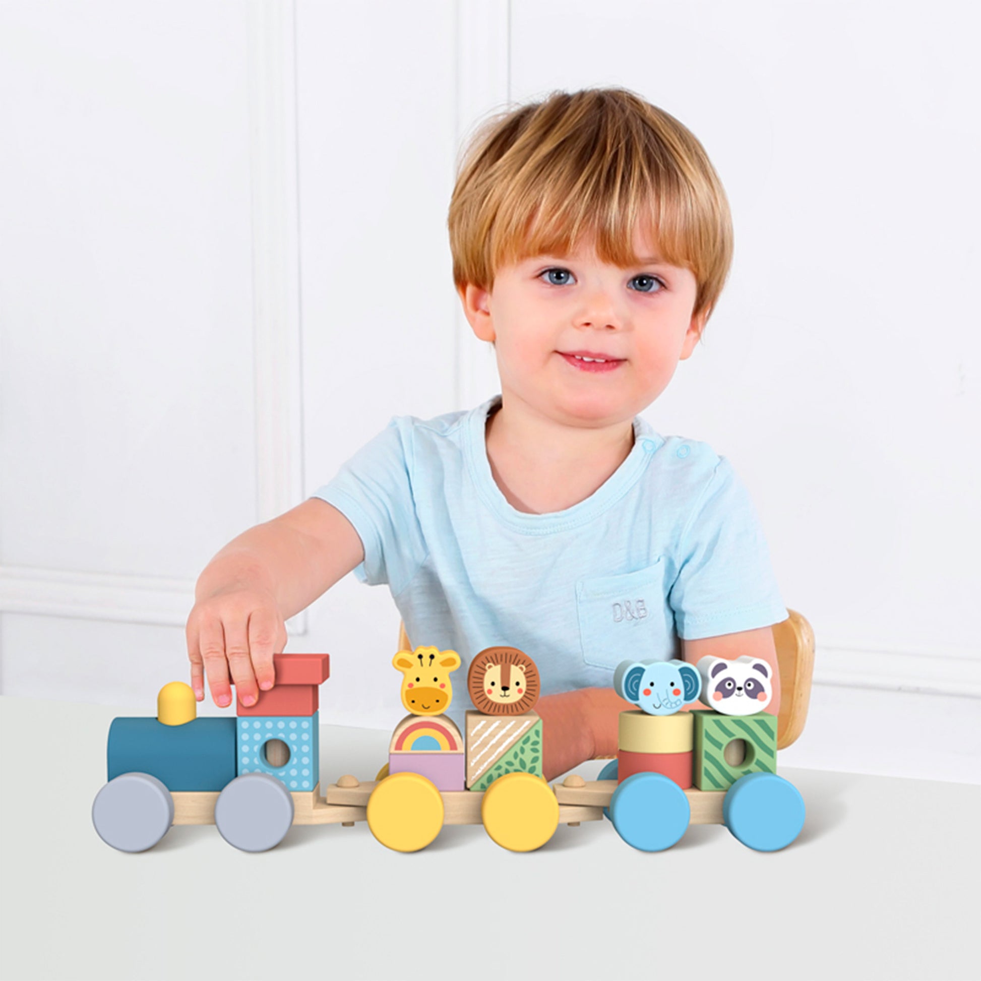 Los niños se deleitarán apilando los bloques vibrantes en el tren, descubriendo una variedad de colores, patrones y formas en el camino. Con encantadoras cabezas de animales que adornan el tren y bloques brillantes en una paleta de colores suaves y relajantes, este juego cautiva los sentidos y fomenta la creatividad.