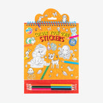 Divertido libro de 8 páginas para pintar tus propios stickers. Tiene 3 lápices para pintar con doble cara con un total de 6 colores.