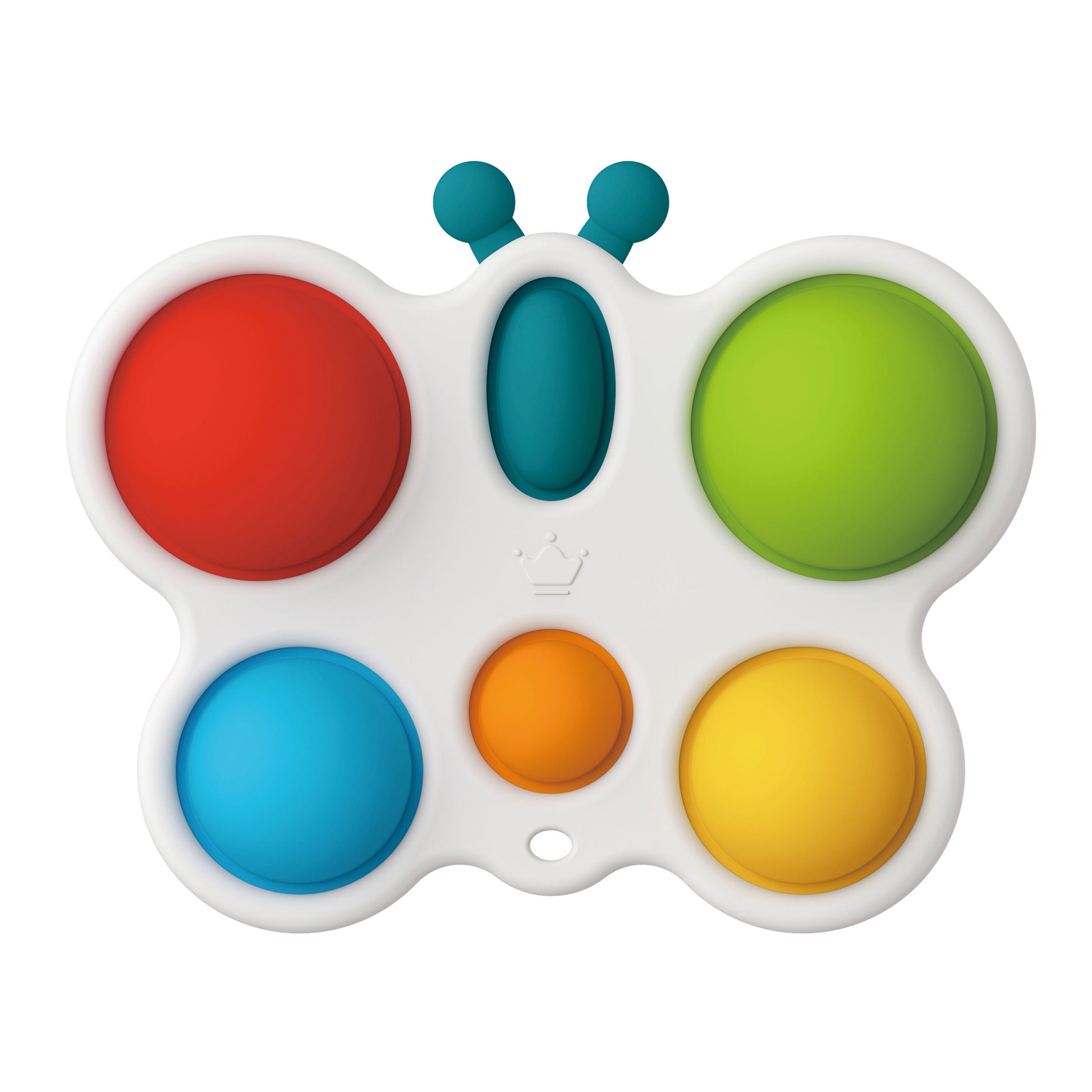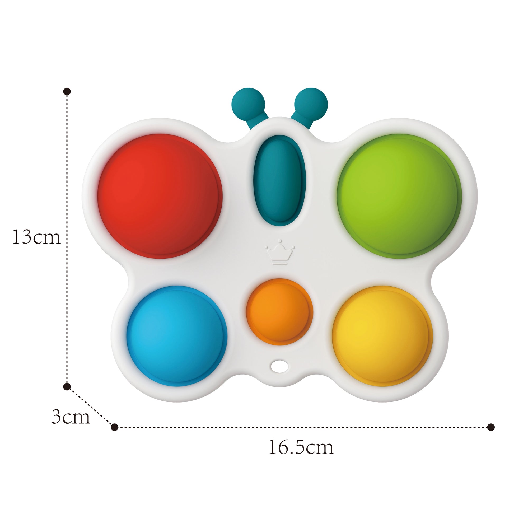 Mordedor sensorial de animales con burbuja con forma de mariposa.