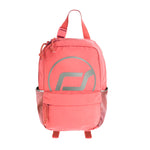 Está fabricada con material PET reciclado. Es repelente al agua y con una capacidad de 9 litros. La espalda y correas en los hombros tienen un acolchado suave para un transporte cómodo. En la parte lateral posee 2 porta botellas y 2 bolsillos con cierre (exterior e interior), además incluye un llavero.