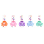 Cinco colores de esmalte de uñas pastel en una caja.