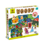 Contiene Rompecabezas de madera con forma de 24 piezas. 7 figuras de madera con base. Escenario ilustrado.