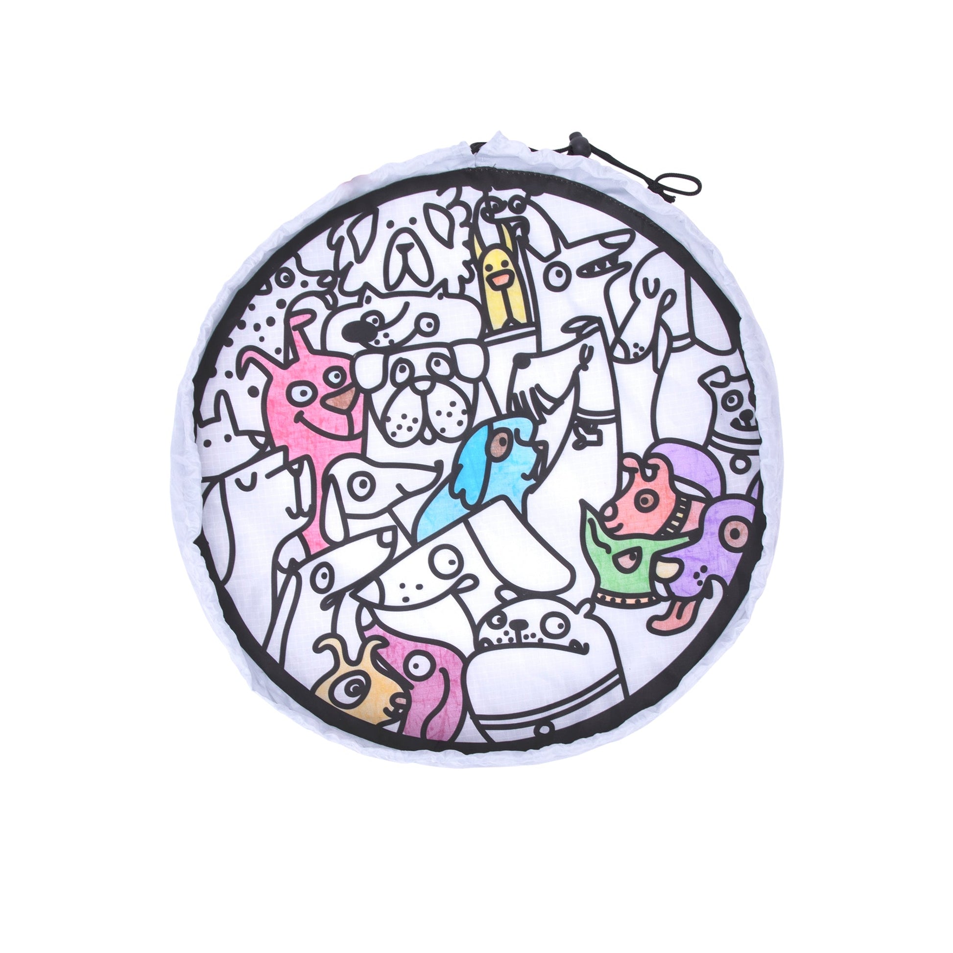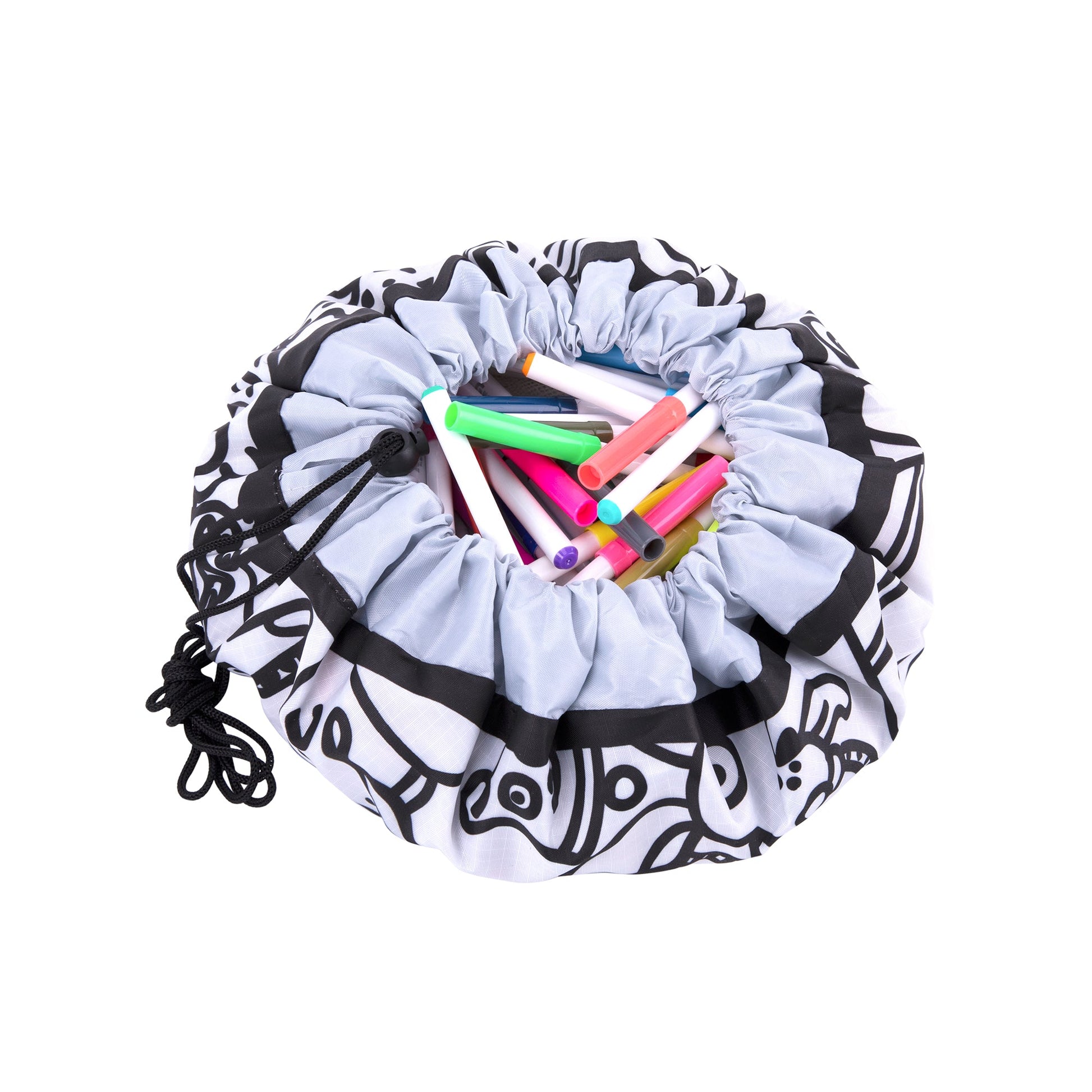 Simplemente llena la alfombra con los juguetes y accesorios favoritos, tira de la cuerda y luego lleva las cosas a donde quieras ir. No solo eso, también cuenta con una linda base con temática de animales, que se puede pintar con marcadores (no incluidos).