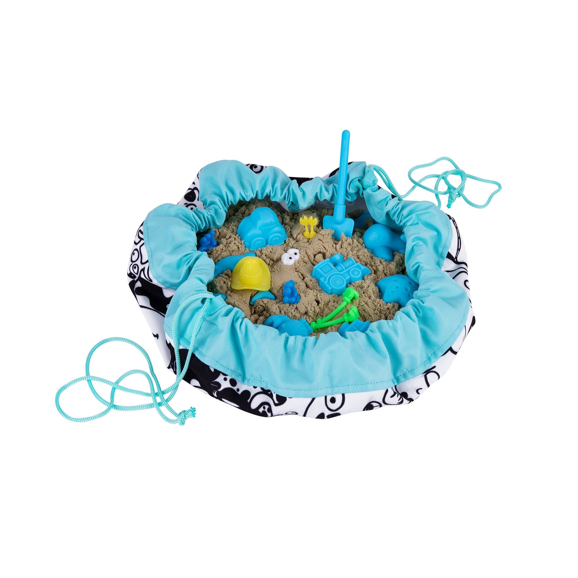 La alfombra está hecha con una tela resistente y resistente al agua, también puedes llenarlo con productos sensoriales, como arena o plastilina, para divertirte sin ensuciar.