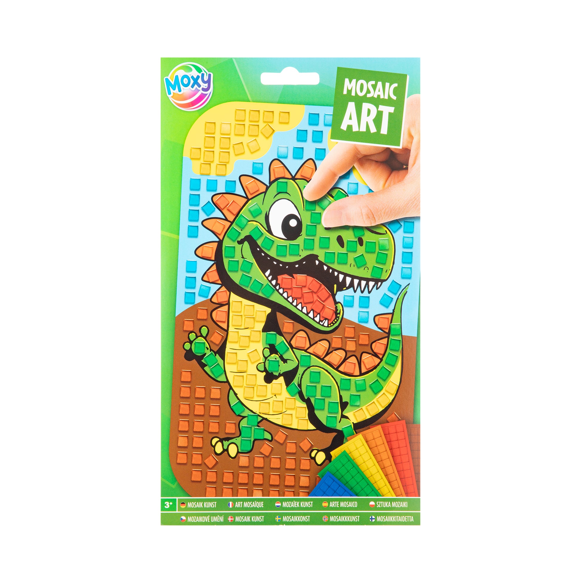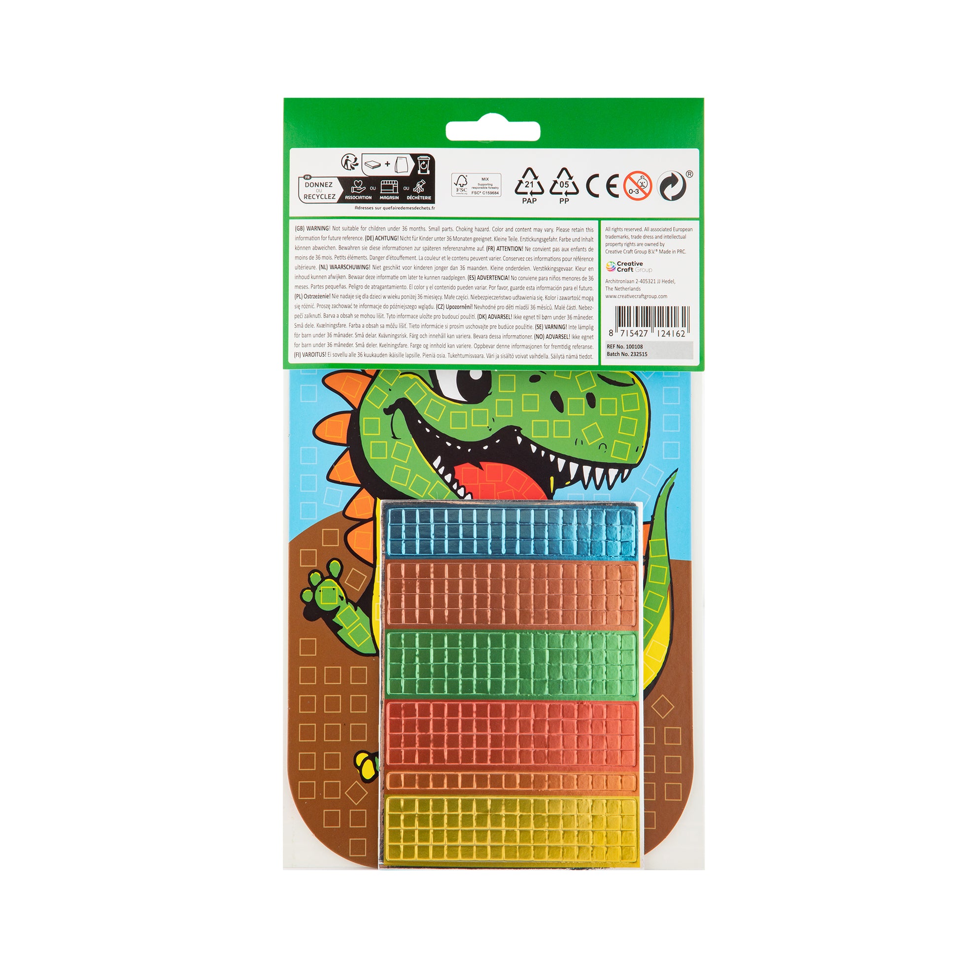 Kit de manualidades para crear una obra de arte en mosaico a partir de pegatinas cuadradas. Disponible en versiones mariposa, dinosaurio, unicornio y peces.
