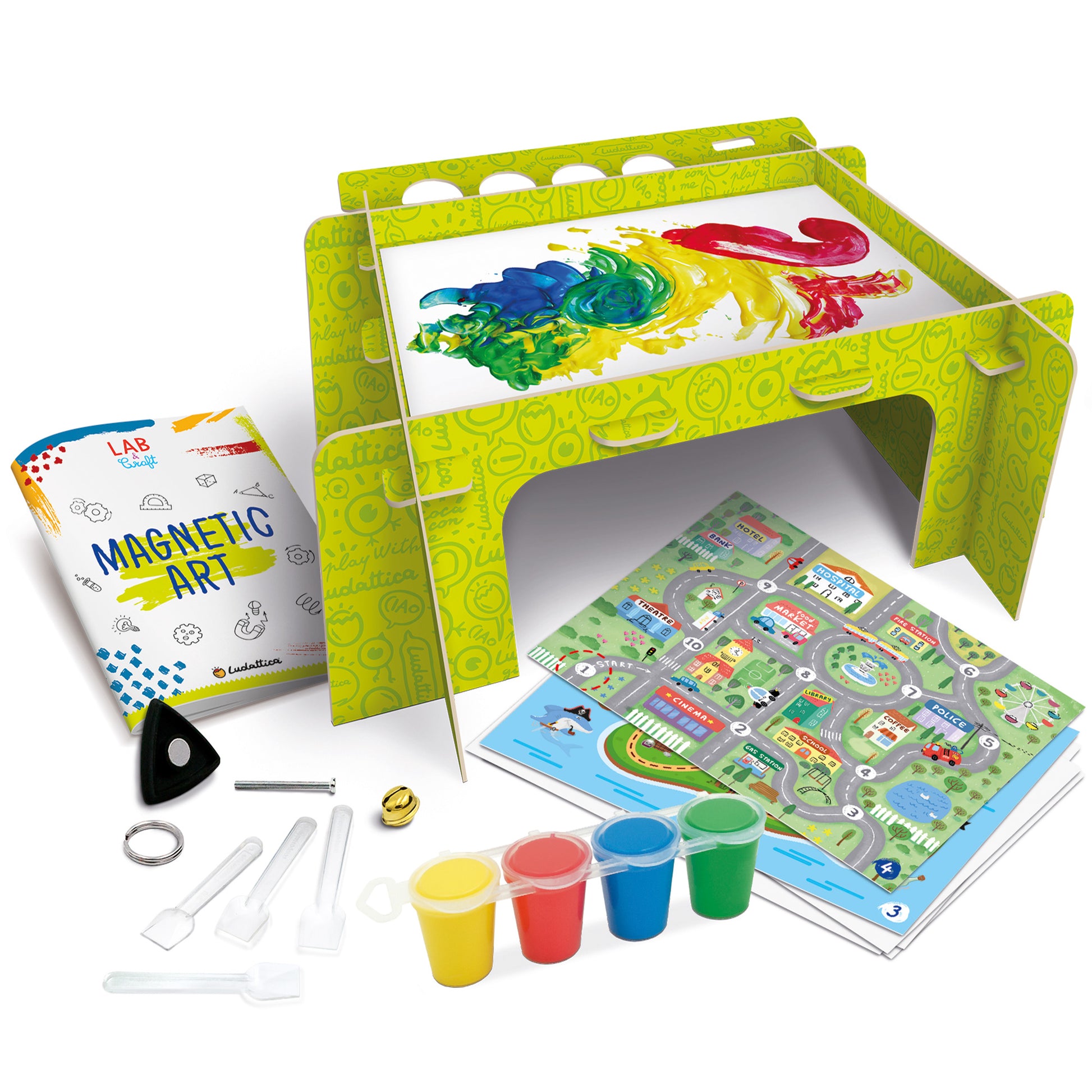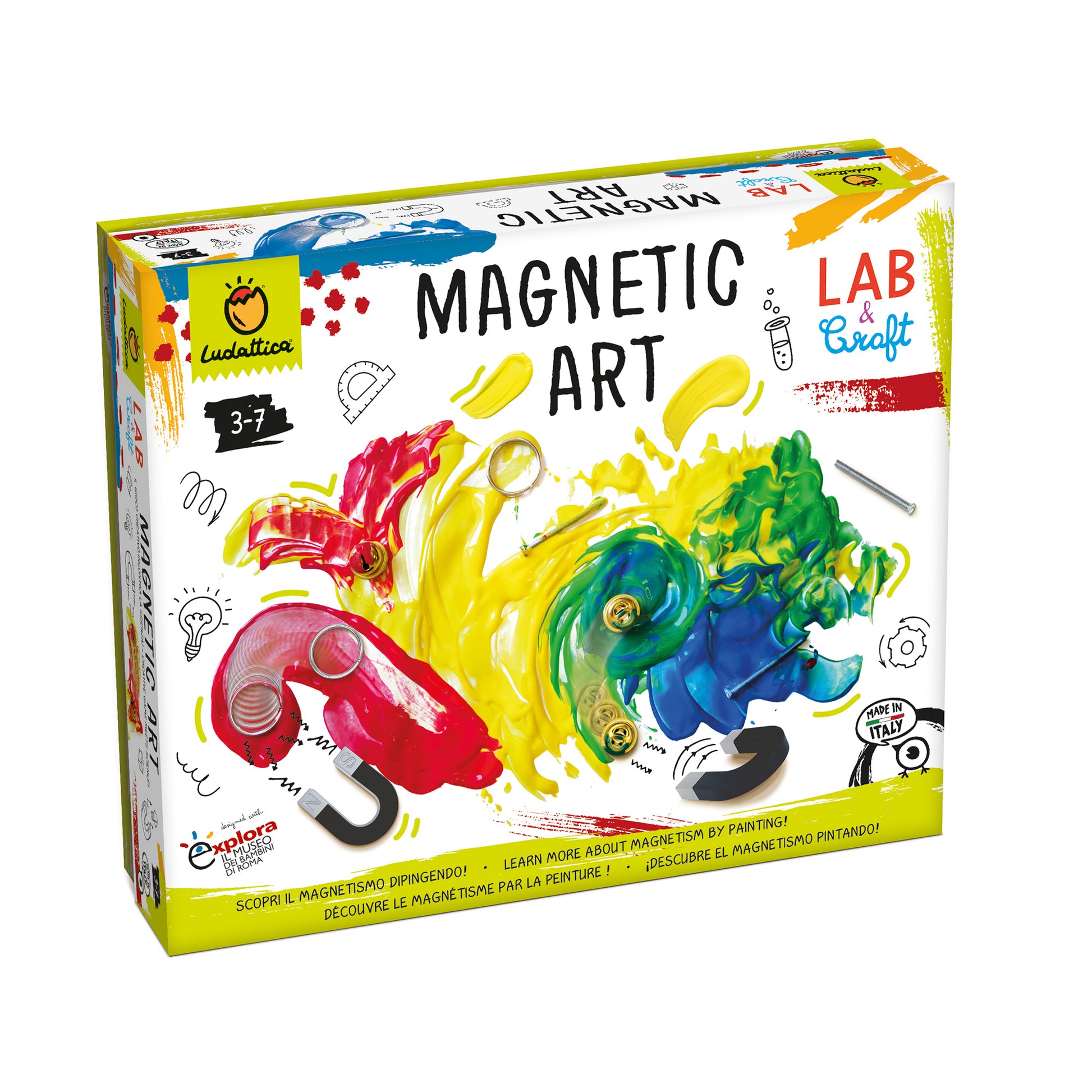 Un juego que une la observación del fenómeno de los imanes (capaces de atraer, arrastrar y mover objetos) a la experiencia artística y creativa de la pintura, dando así forma a increíbles dibujos siempre nuevos.