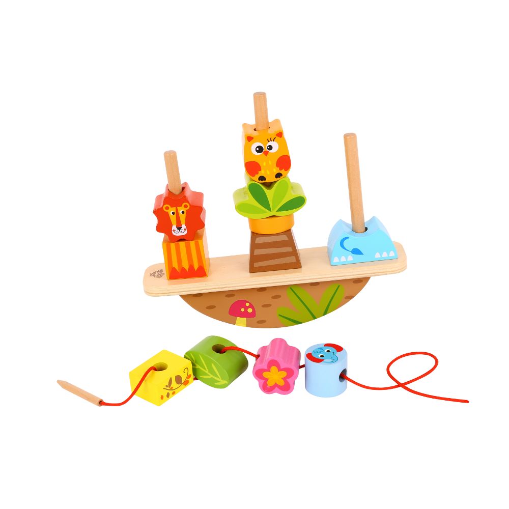 Apila y equilibra los animales. Enseña sobre motricidad fina, y equilibrio. Un novedoso y entretenido juego. Madera suave y colores llamativos. Tintura atóxica.