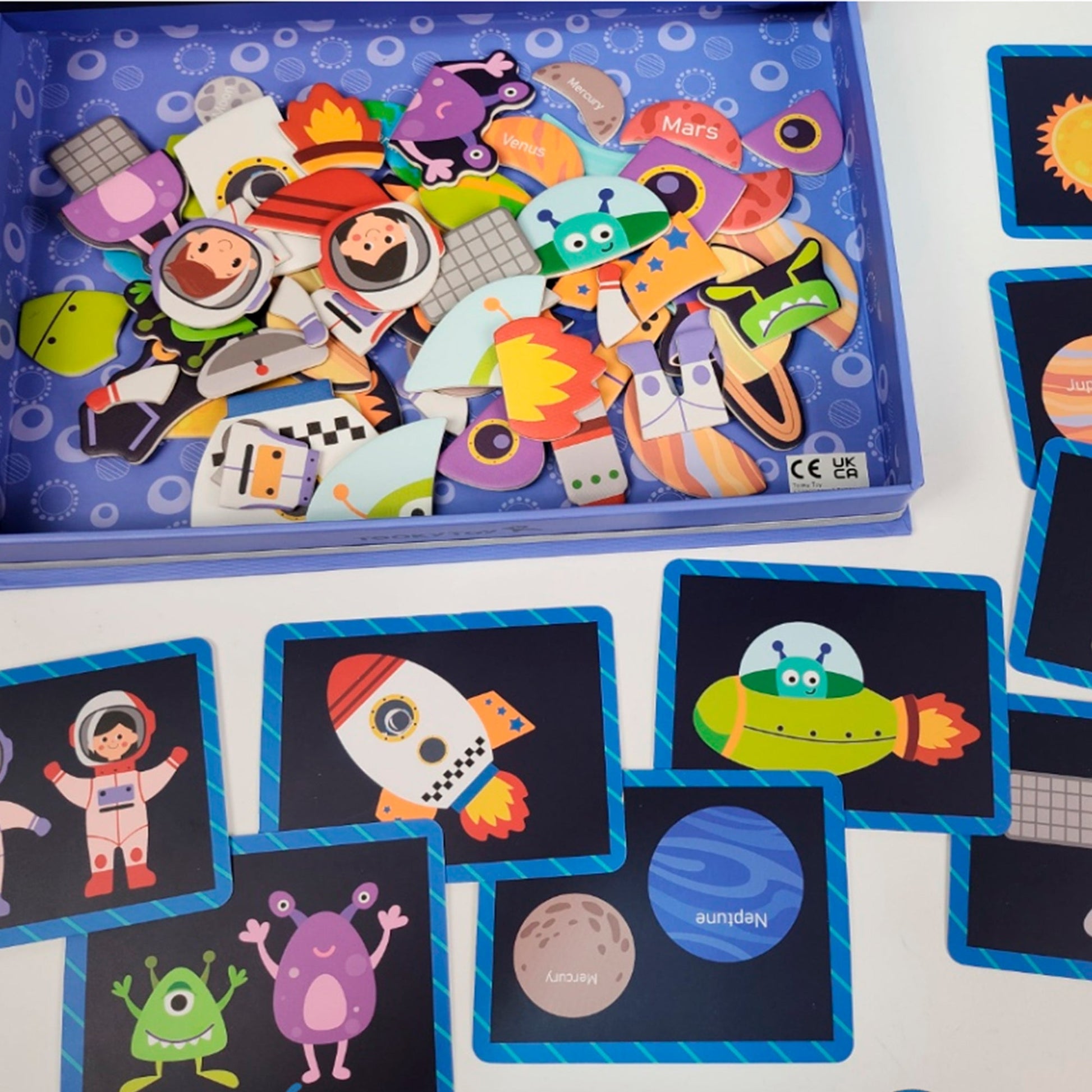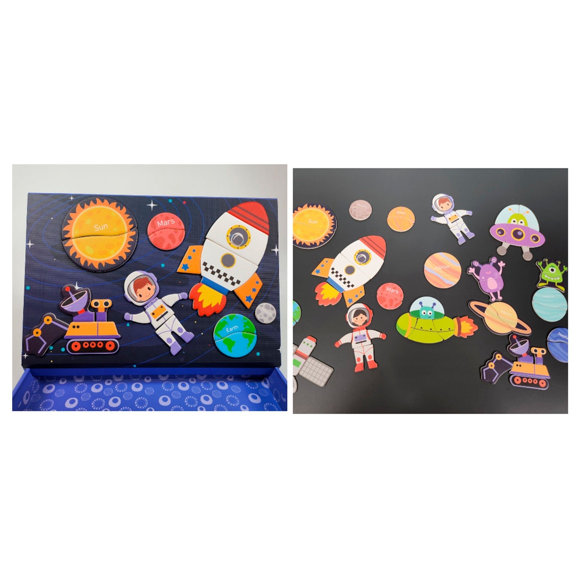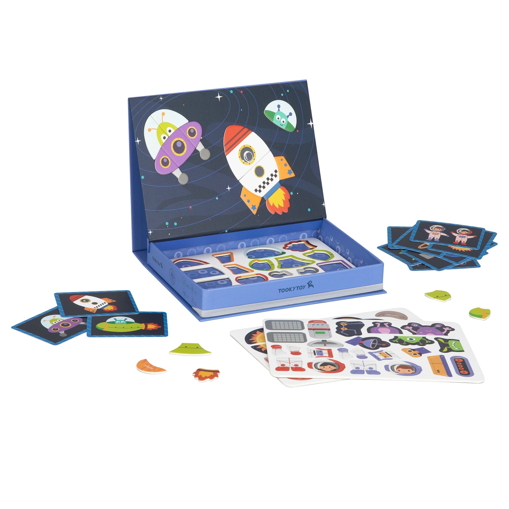 La Caja Magnética de Espacio de Tooky Toy mantendrá a los niños entretenidos durante mucho tiempo. En la base magnética, que forma parte de la caja, los niños tienen 72 piezas para armar este escenario con imanes diferentes y utilizarlos para construir una escena.