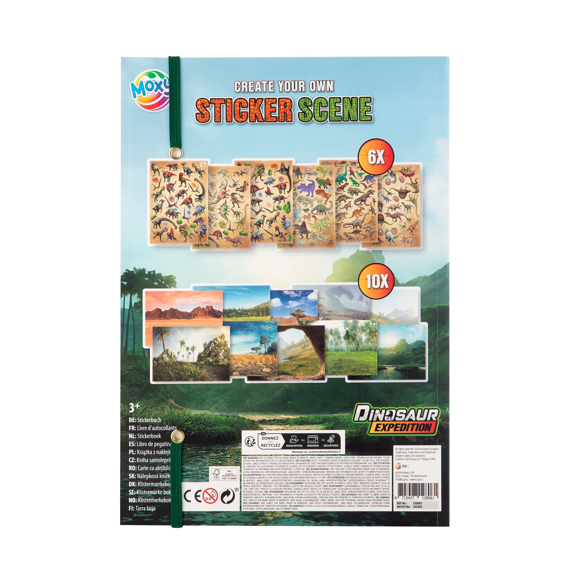 Contiene 10 hojas con diversos fondos y 6 hojas stickers de dinosaurios.