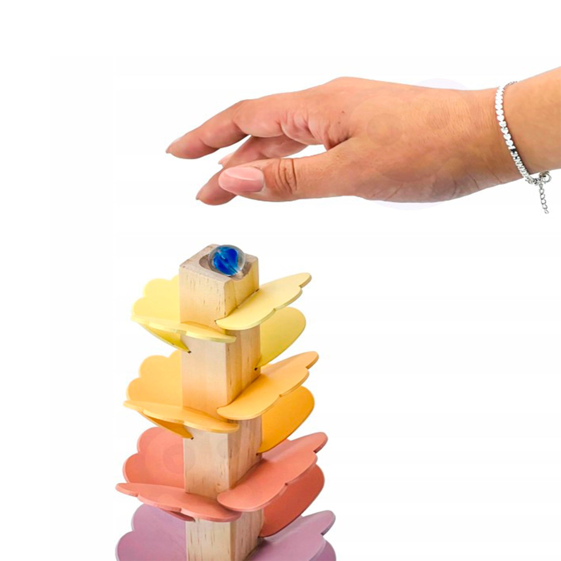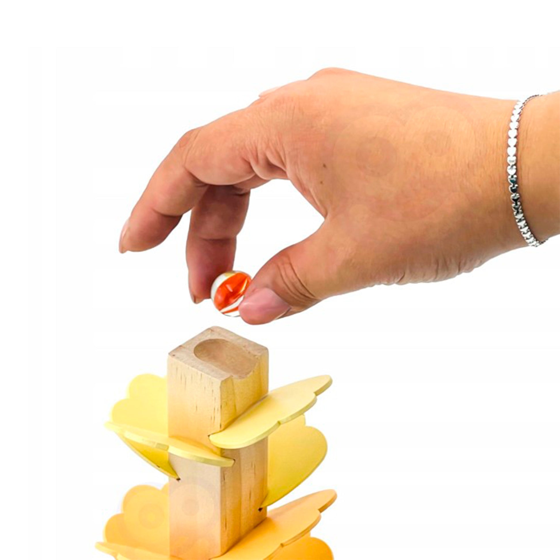 La pista de bolas de madera de Tooky Toy es una torre en espiral que proporciona diversión sin fin. Este juego consta de 20 piezas coloridas que su niño puede organizar fácilmente y 6 pelotas. Suelta las bolas una a la vez desde el nivel superior y observa cómo ruedan una por una.