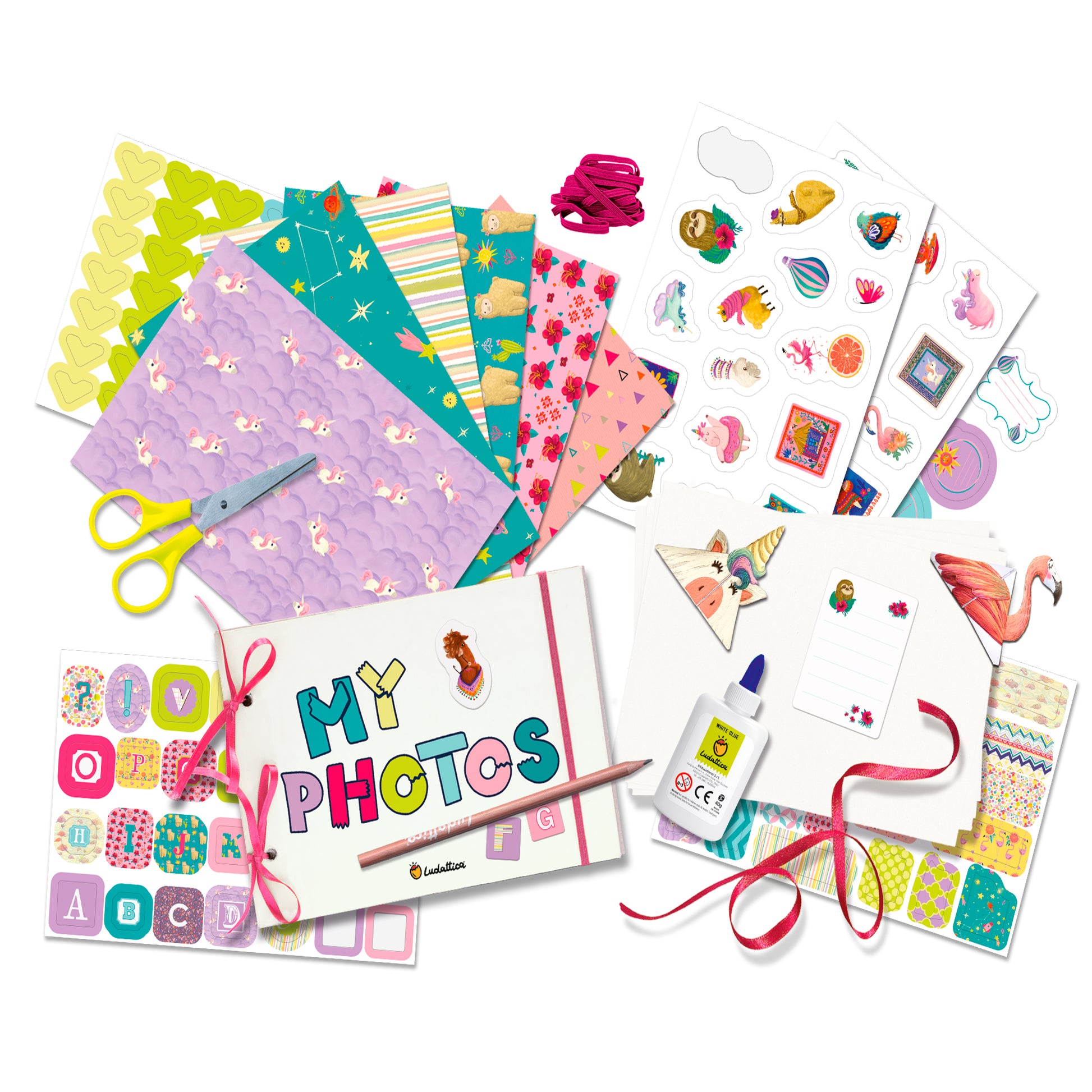 ¡Un completo set para jóvenes creativos! Un álbum verdaderamente especial para crear y decorar, donde podrás guardar fotos, billetes y recortes importantes mientras experimentas con diversas técnicas artísticas como el collage, el estarcido, el dibujo y el recorte.
