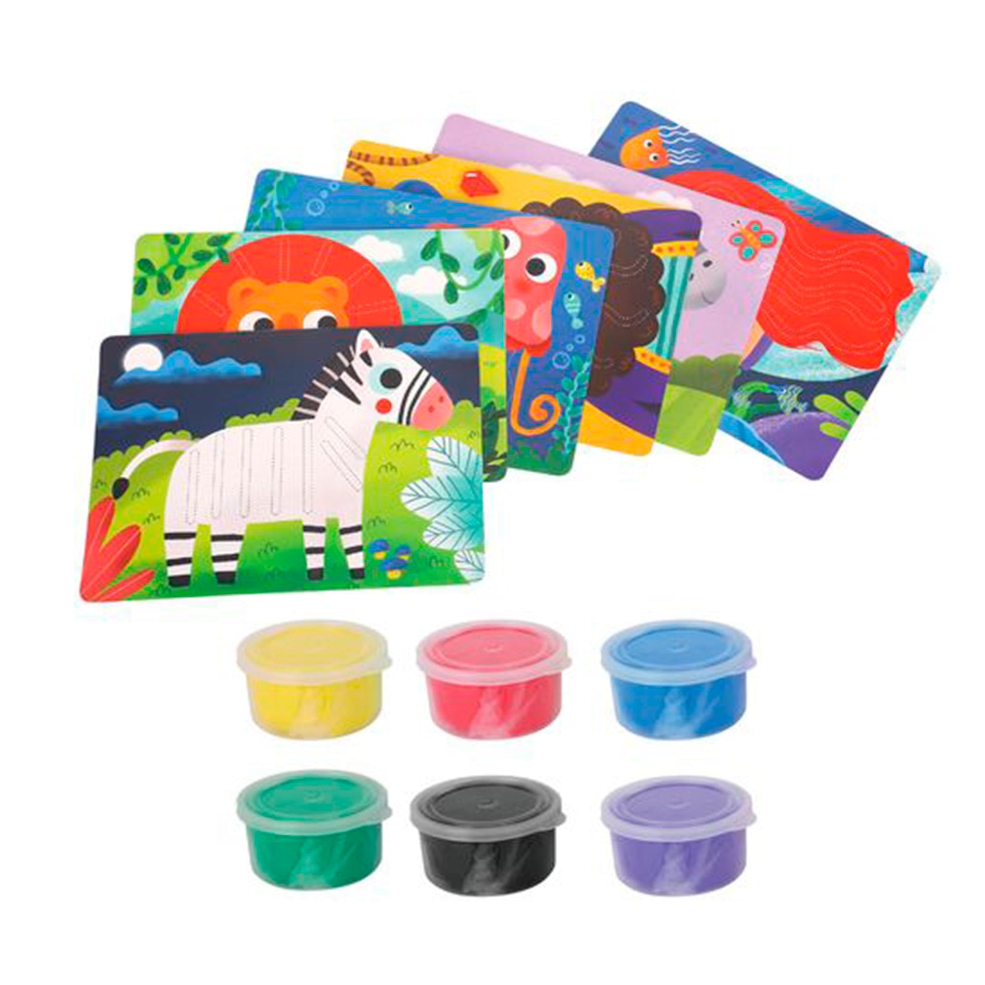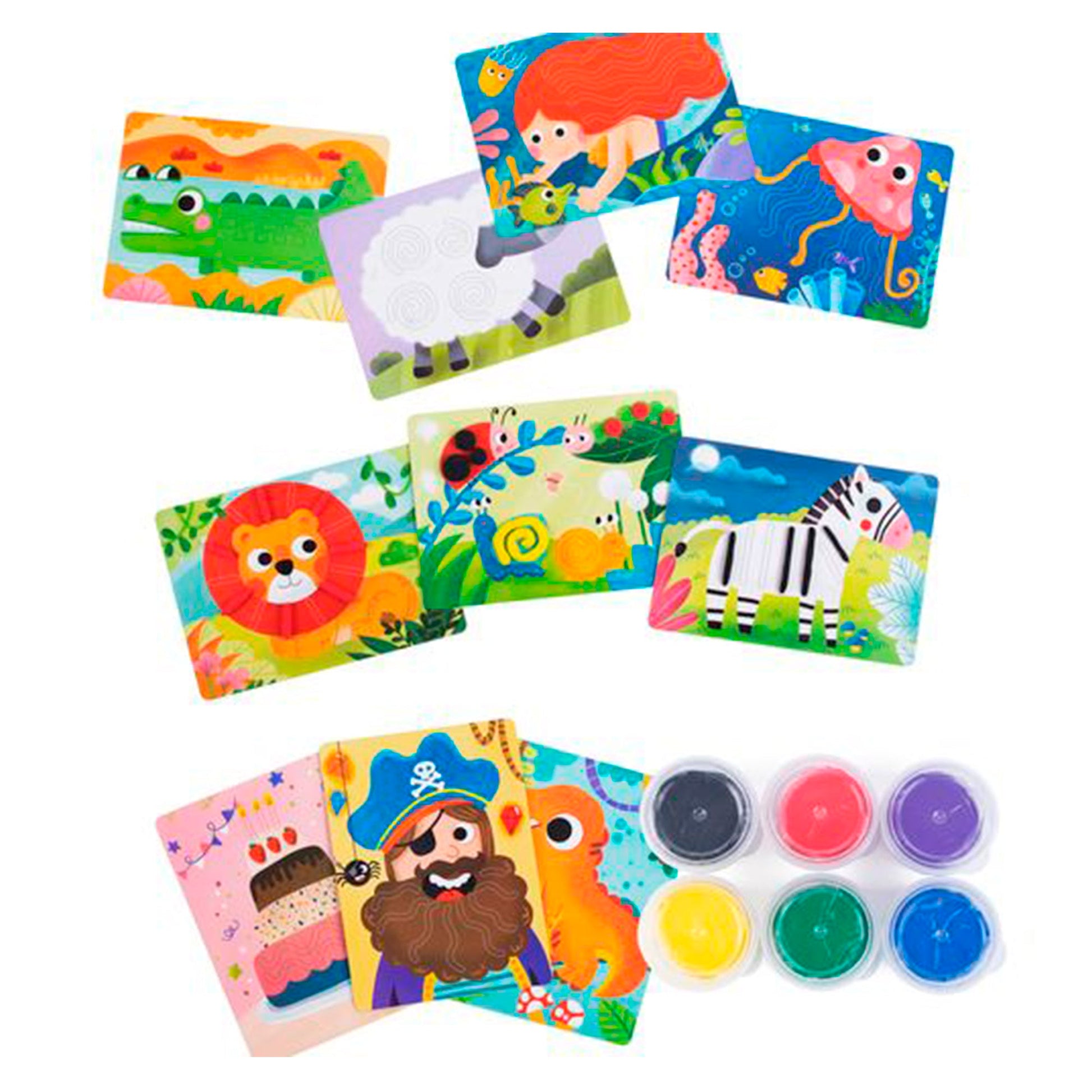 El kit incluye 6 botes de masa (la masa es muy liviana, viscosa, plástica, inodora y no se pega a las manos) y 10 cuadros que requieren masa para complementar.