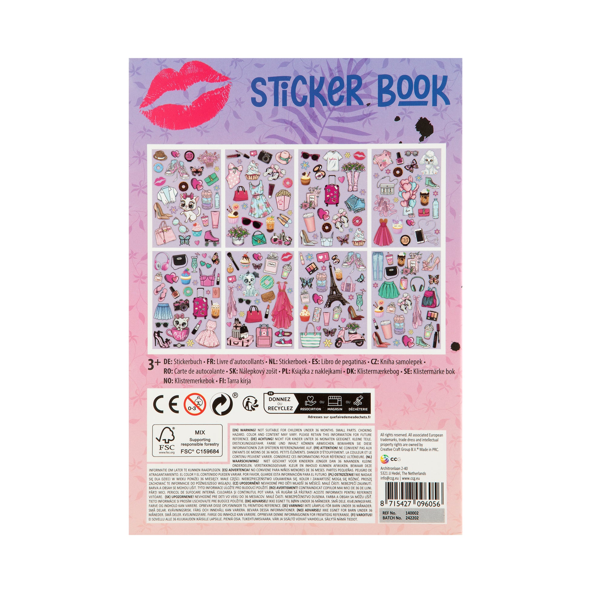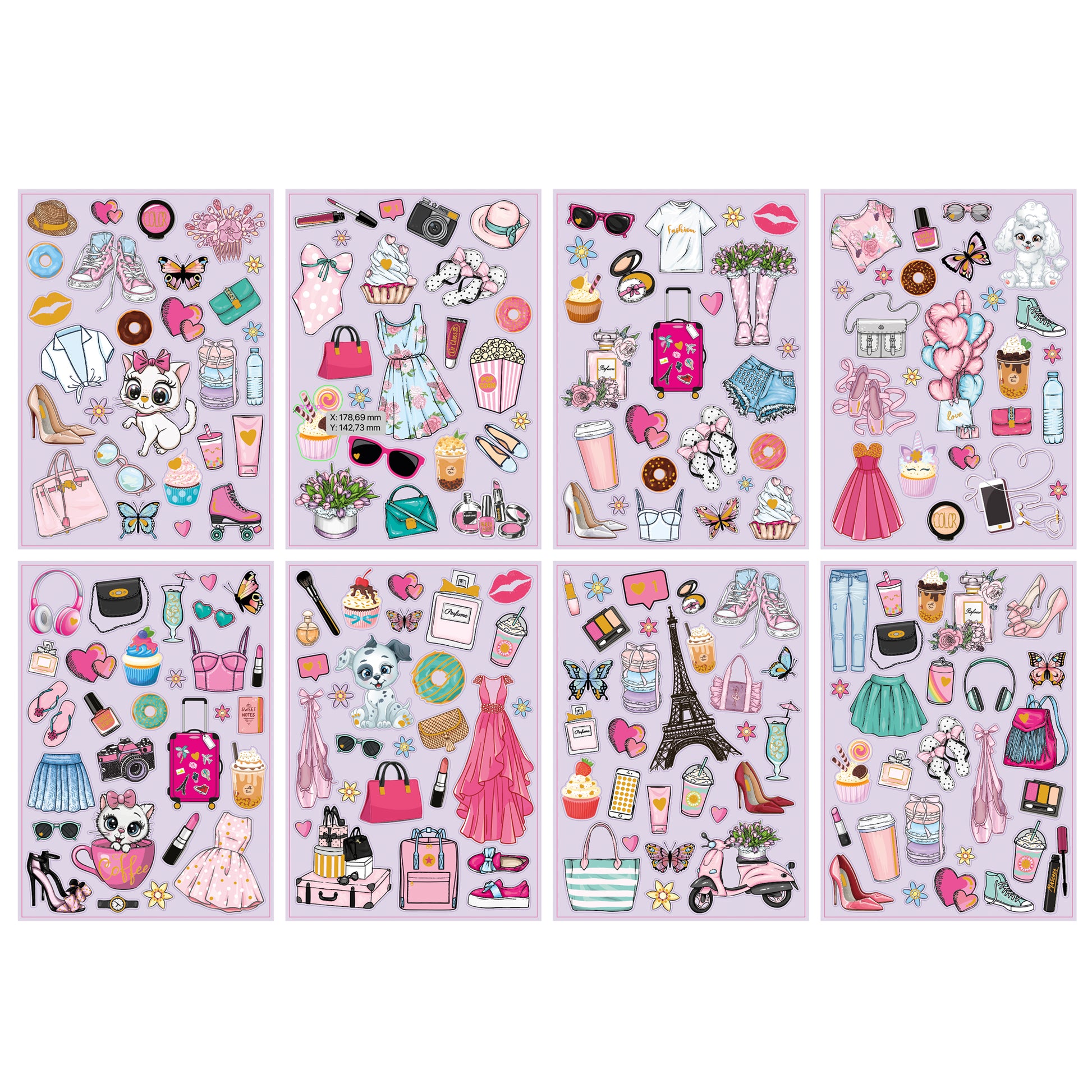 Álbum de stickers de mejores amigas con muchos autoadhesivos diferentes, una principalmente de artículos de verano y la otra de moda.