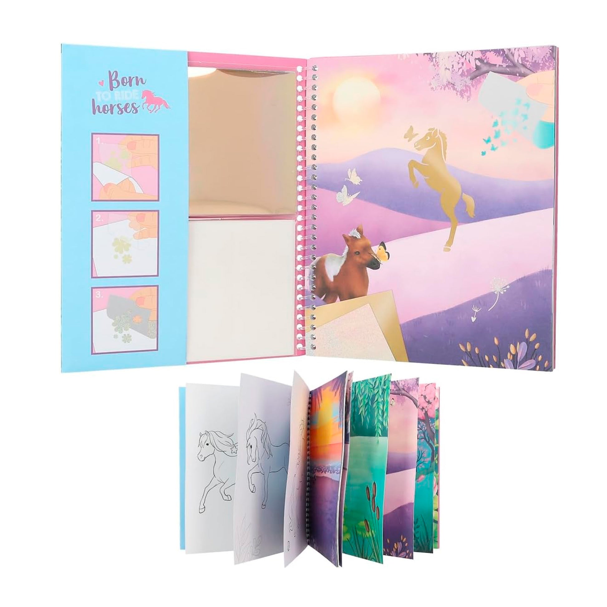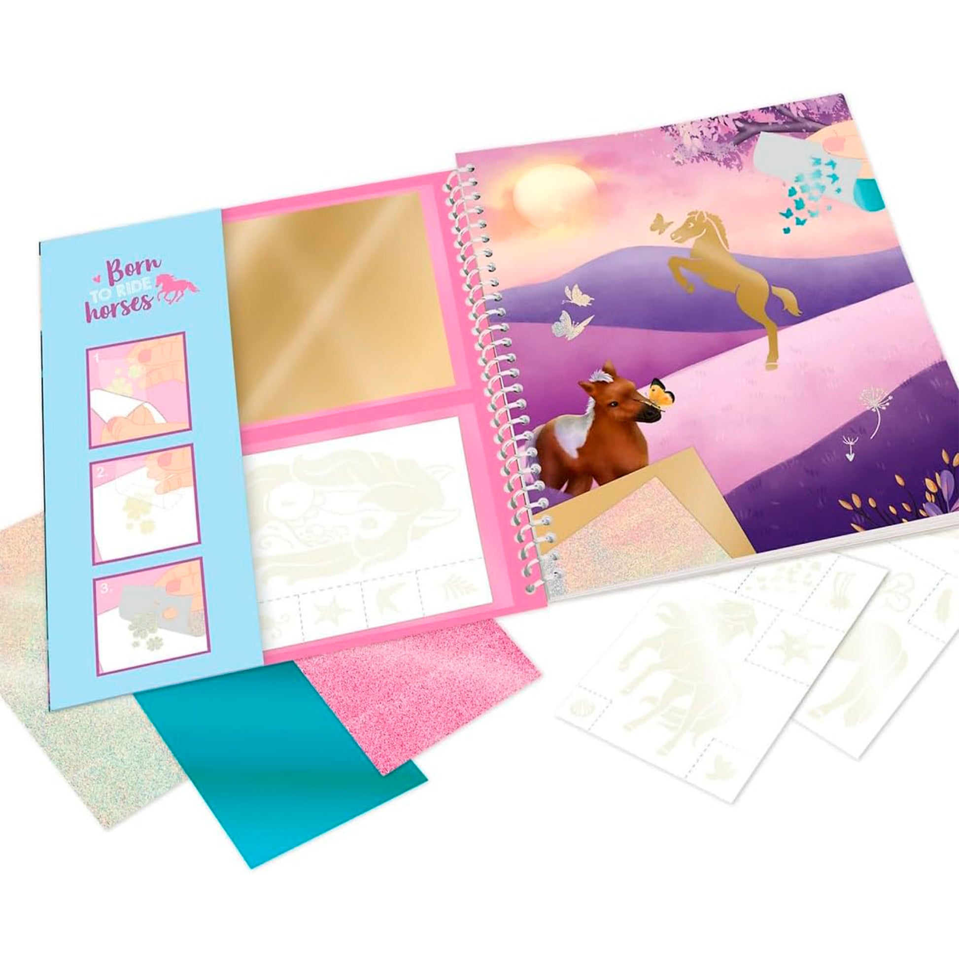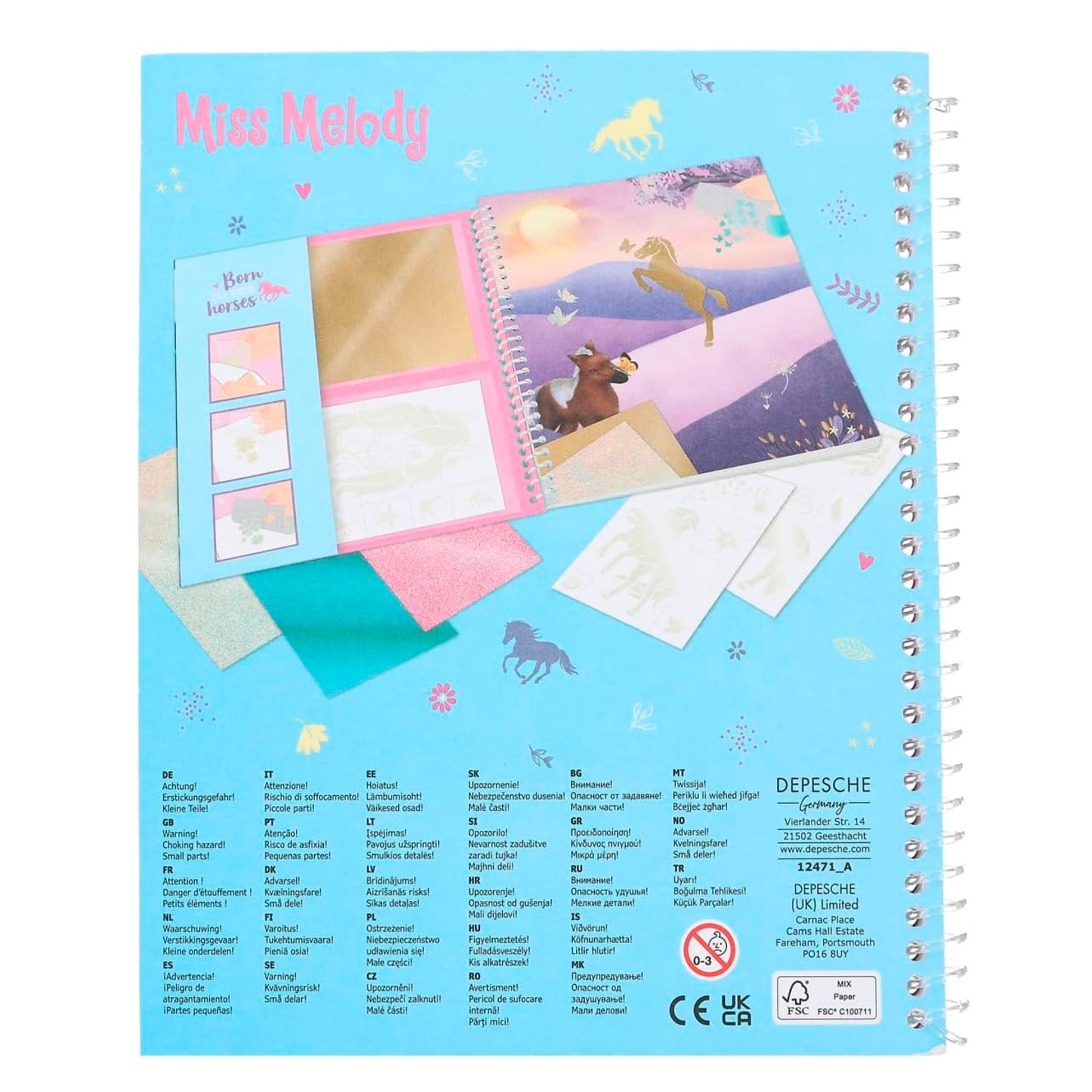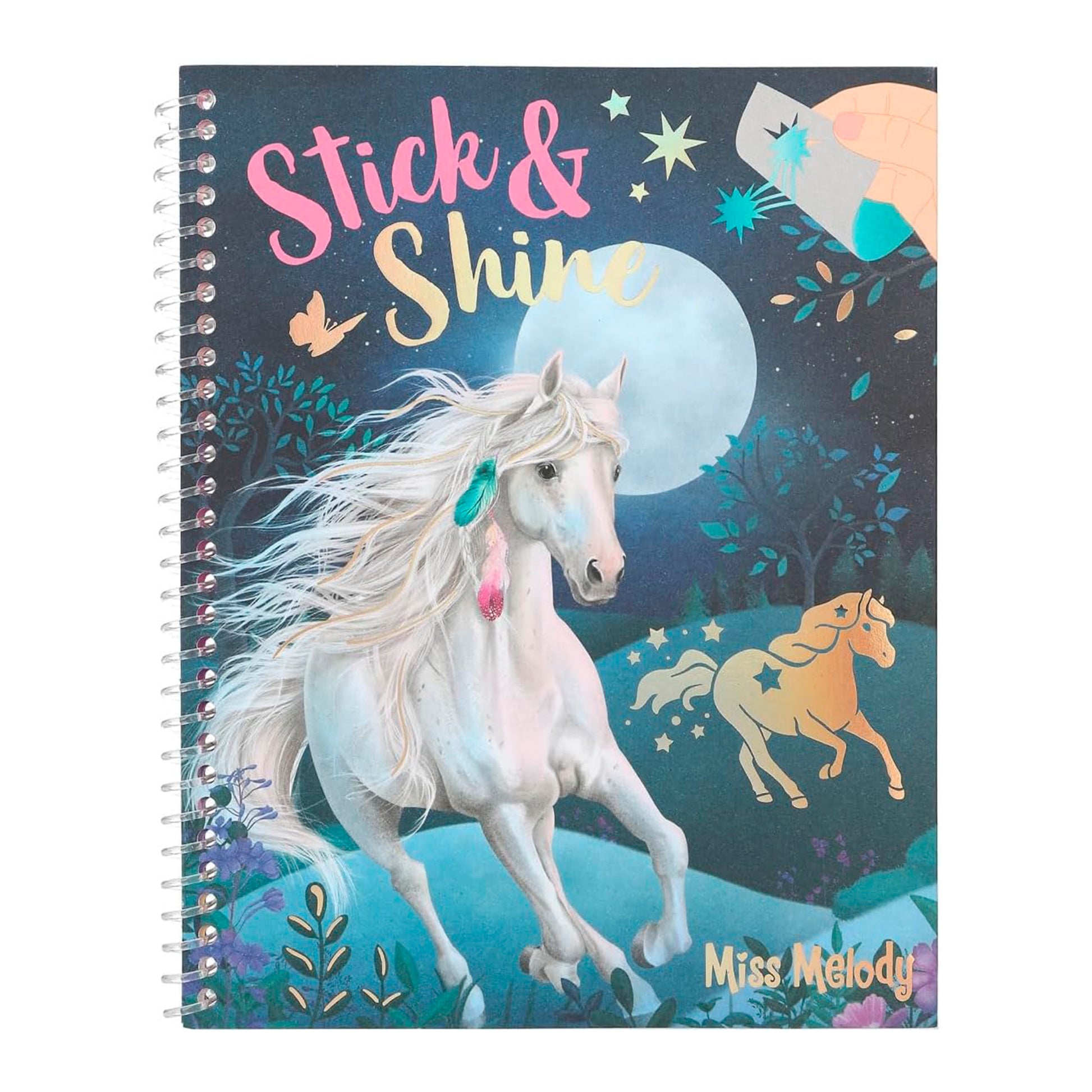 Diversión sin límites dibujando y poniendo pegatinas. El cuaderno de dibujo Stick & Shine de Miss Melody incluye 12 plantillas para dar rienda suelta a la fantasía coloreando. Pero, además, se puede completar los diseños con todos los tatuajes adhesivos distintos que vienen en 8 hojas y terminar de realzarlos poniendo acentos únicos gracias a las 8 láminas de purpurina incluidas.