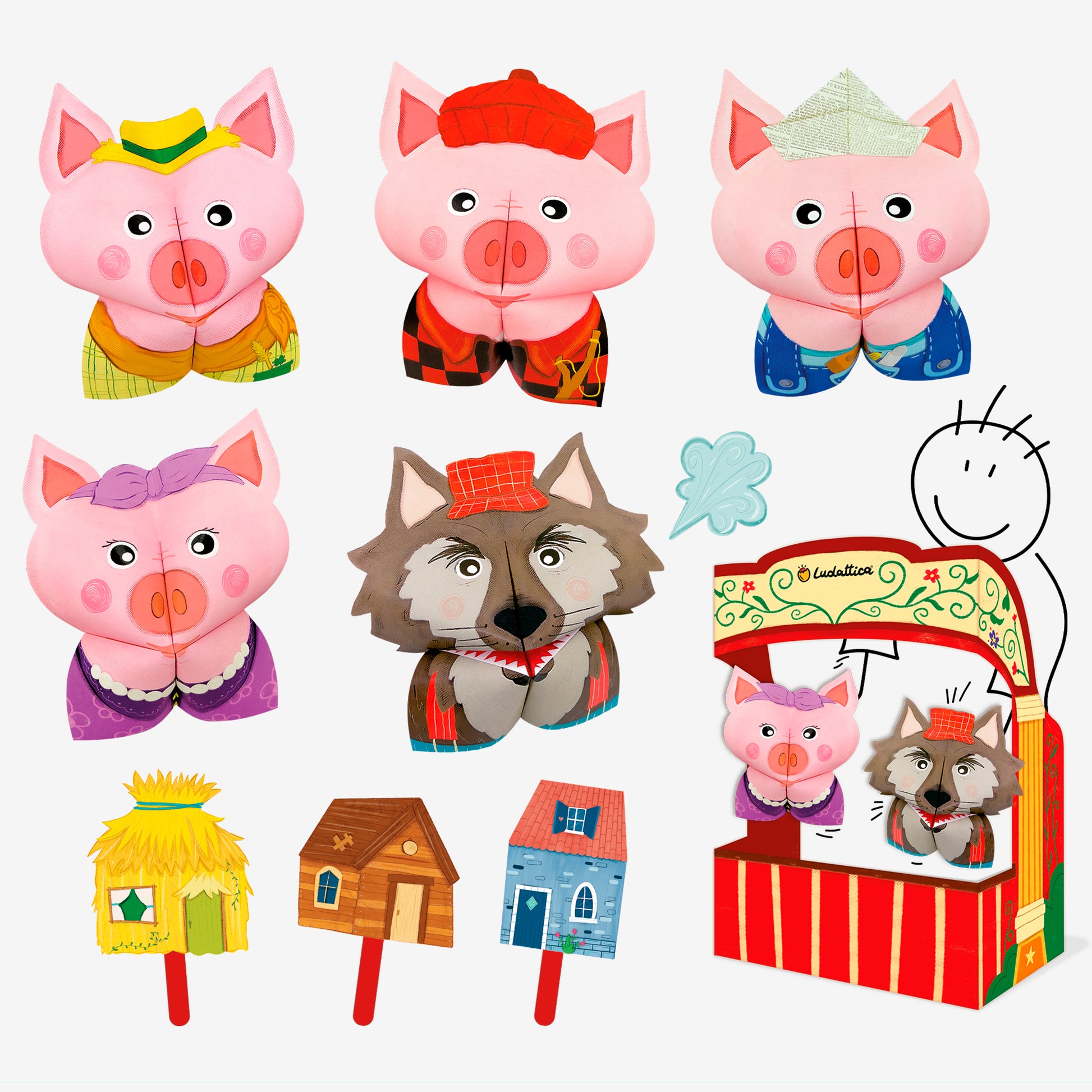 De la mágica fusión del mundo del origami y el de los cuentos de hadas surge esta original línea de juegos, diseñada para crear personajes de cuentos de hadas con técnicas de origami y representarlos en un auténtico teatro de marionetas.