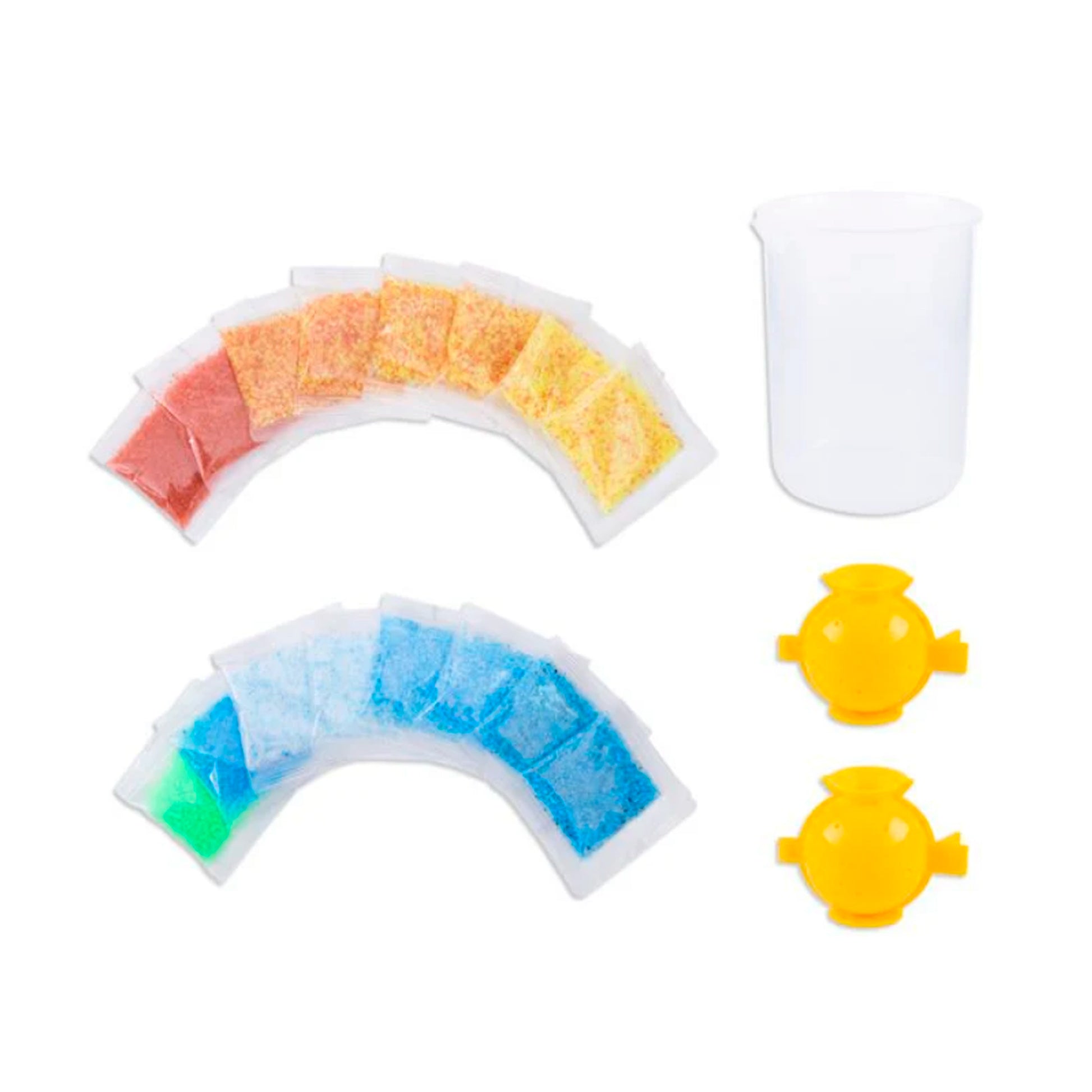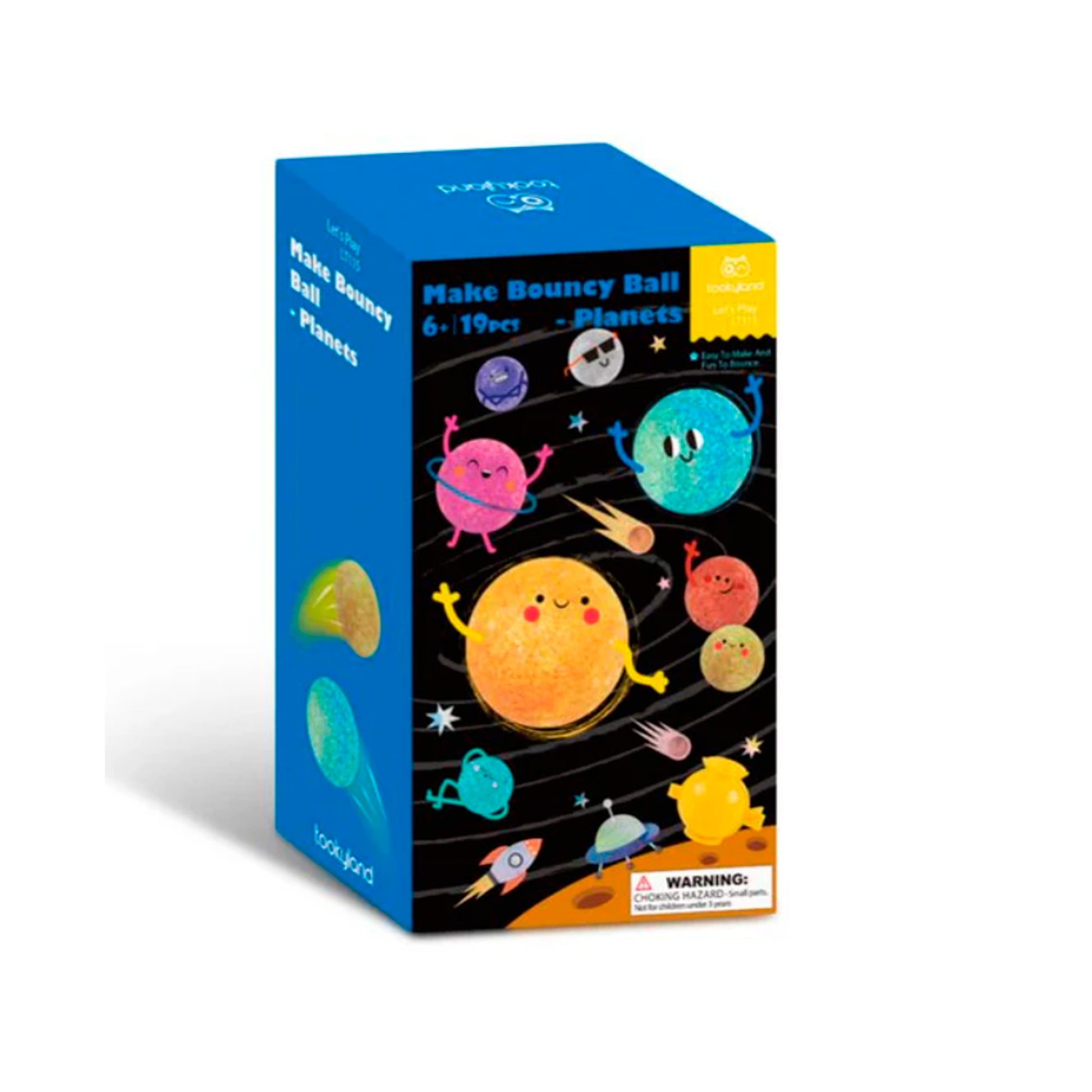 Gracias a este exclusivo set creativo, los niños pueden crear pelotas saltarinas con la forma de todos los planetas de nuestro sistema solar. En el paquete los niños encontrarán todo lo que necesitan: un vaso para hacer masa, dos moldes para hacer las pelotas y 16 bolsitas con una mezcla para hacer 8 planetas brillantes.