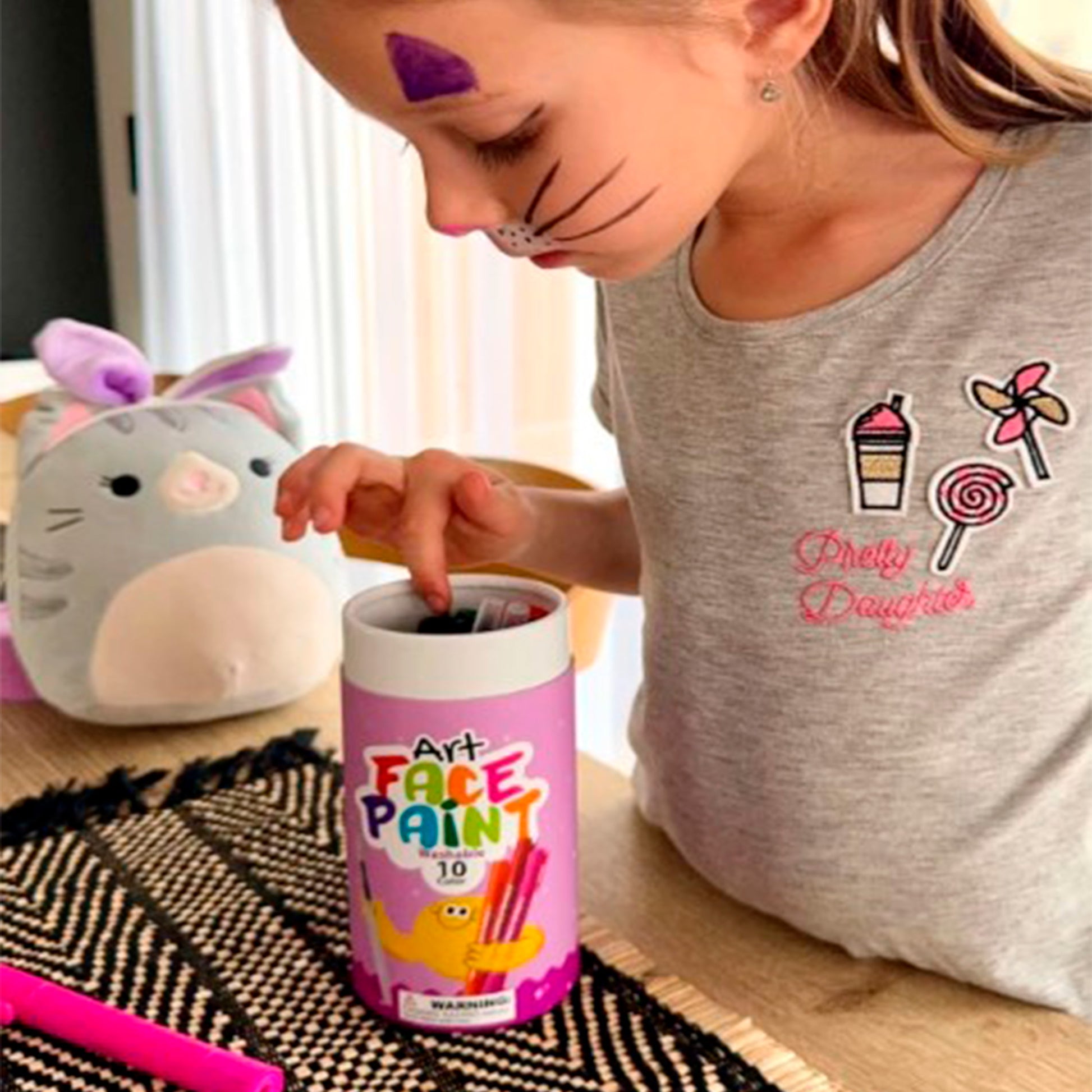 Las pinturas faciales harán las delicias de todos los niños. Son ideales para carnavales, cumpleaños y otras fiestas y reuniones infantiles. Gracias a ellos, tu pequeñ@ se transformará rápida y fácilmente en su héroe o animal favorito. Los colores son fáciles de aplicar en el rostro y de lavar, por lo que no tienes que preocuparte por la piel de tus hijos. No son tóxicos y están testados dermatológicamente.