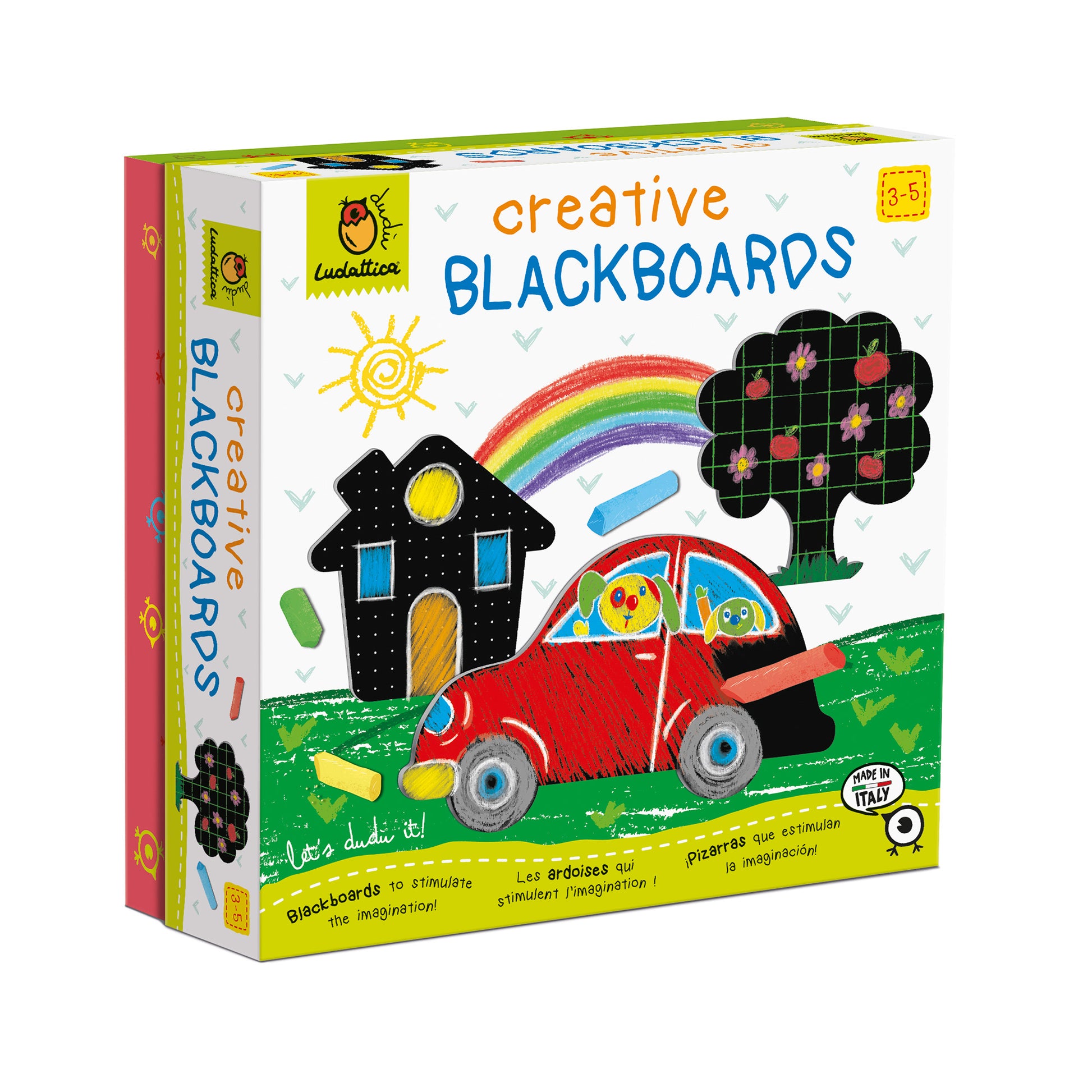 Gracias a los tableros moldeados, los niños experimentan coloreando con tiza y entrenan en actividades. Cada una de las 9 pizarras tiene una forma diferente, para estimular la imaginación y la creatividad de los más pequeños.