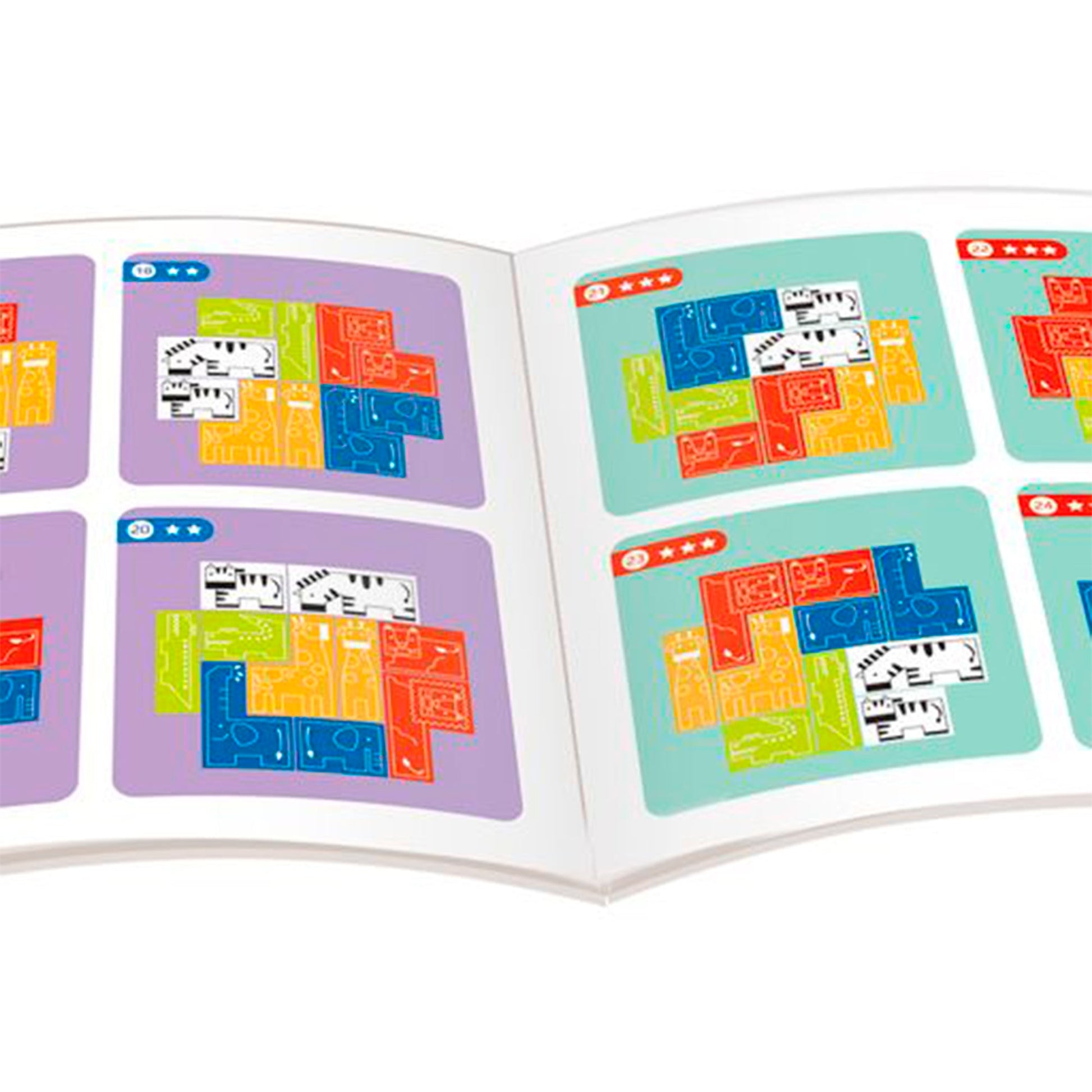 - en el set: 10 bloques con imágenes de animales y 15 tableros de doble cara con 30 patrones con diferentes niveles para organizar