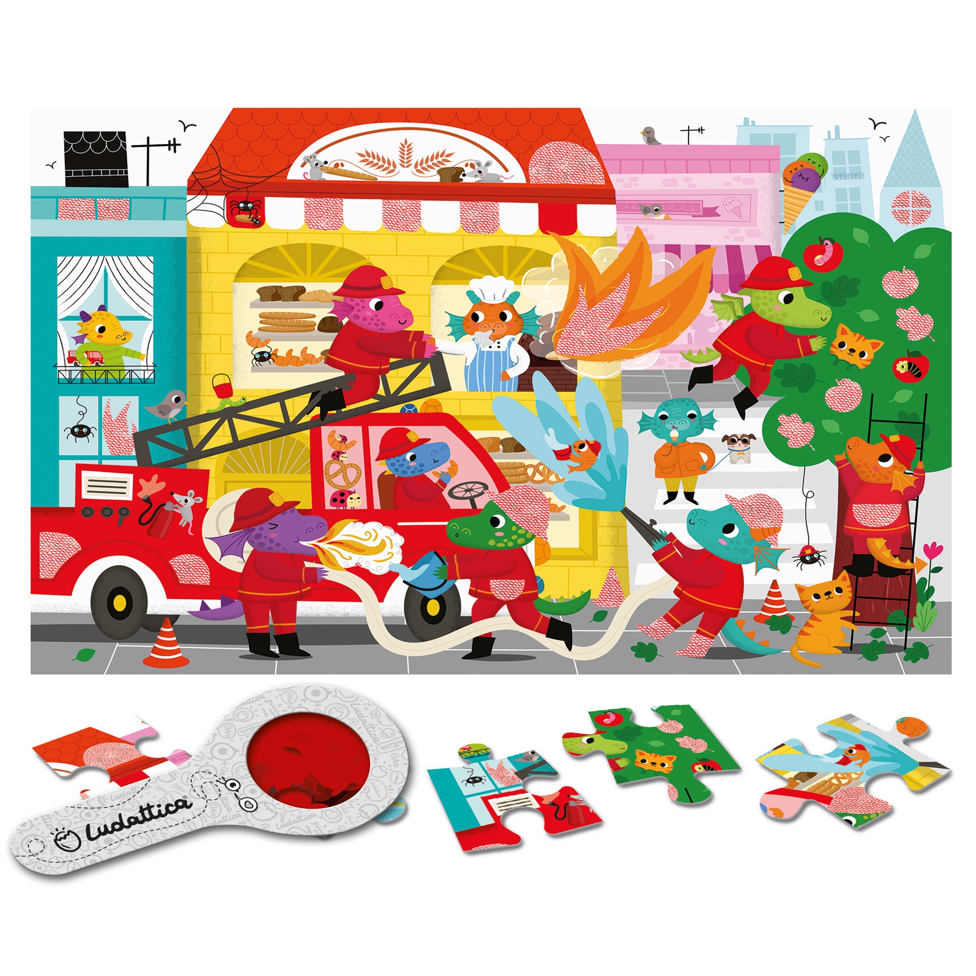 Encaja las 24 piezas, una vez montado el puzle, el niño usará la especial lupa espía para descubrir todos los secretos escondidos en la imagen.