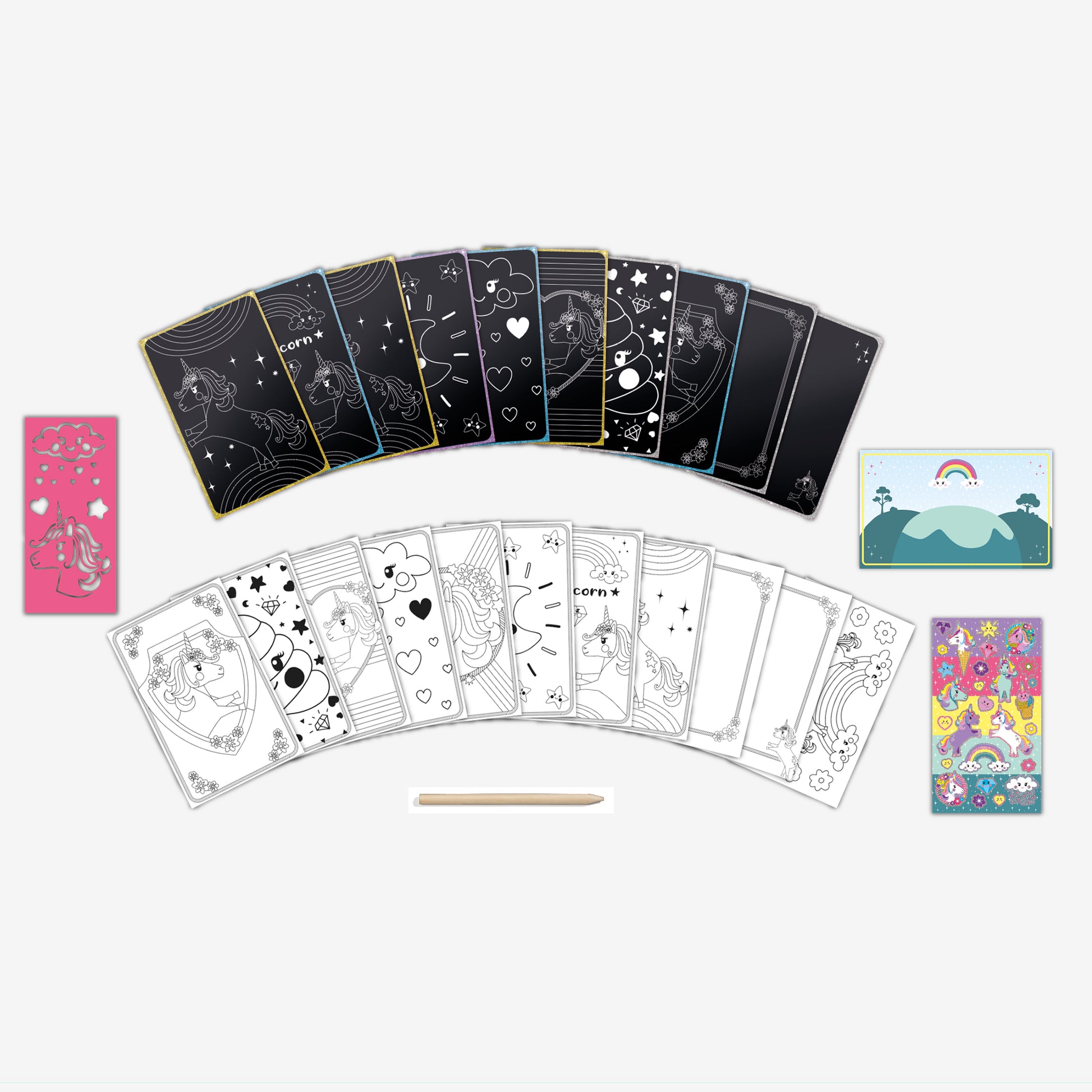Contenido: libro para rascar con 11 imágenes para colorear y 10 tarjetas para raspar, con carpeta, bolígrafo para raspar incluido.
