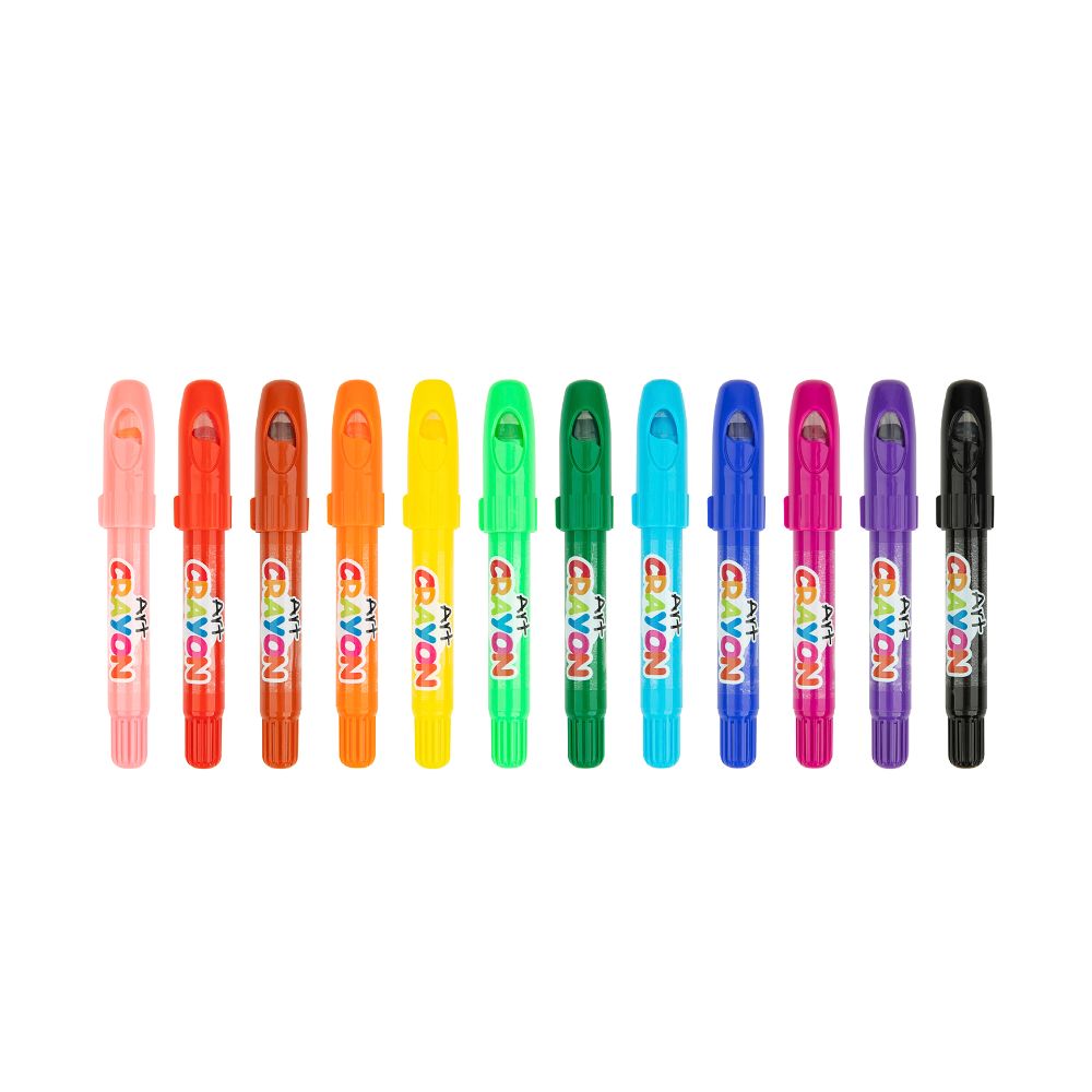 Set de 12 colores de crayones de cera con alto contenido de aceites naturales lo que permite su utilización en rostro y piel.
