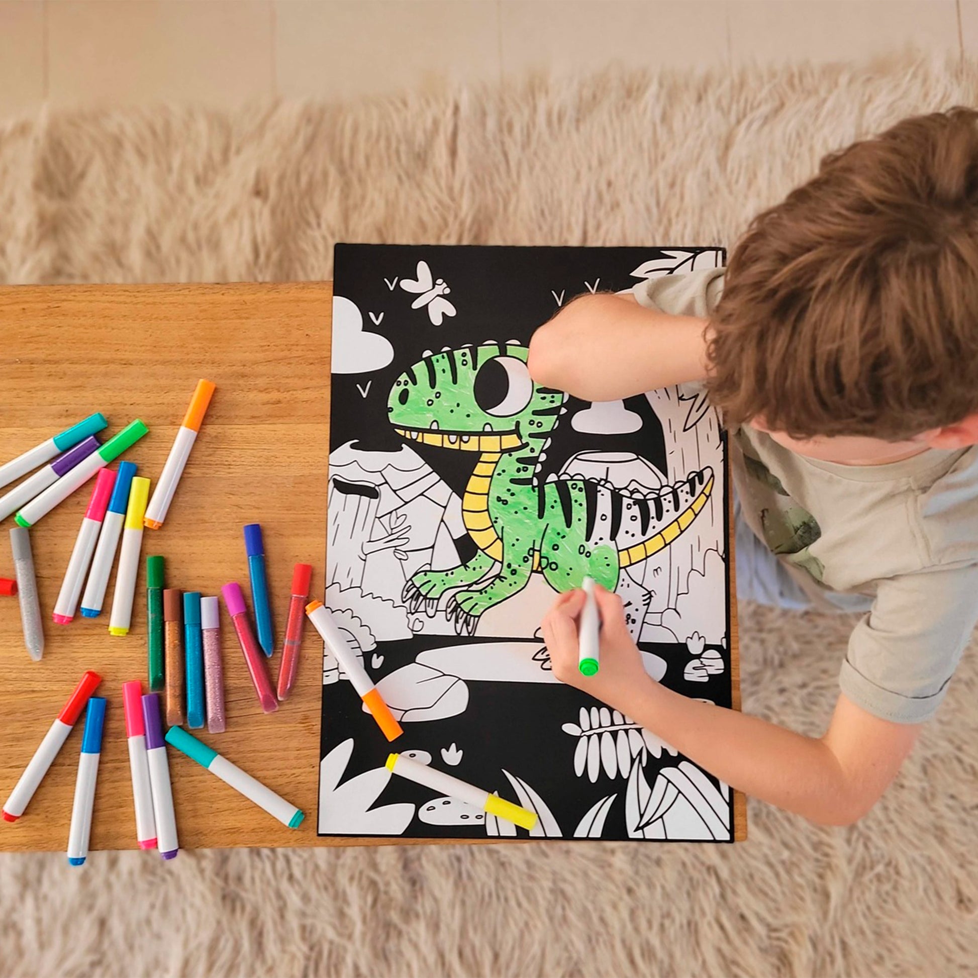 Además, el set con los rotuladores y las colas con purpurina completa de forma colorida y diferente la imaginación de los jóvenes artistas!