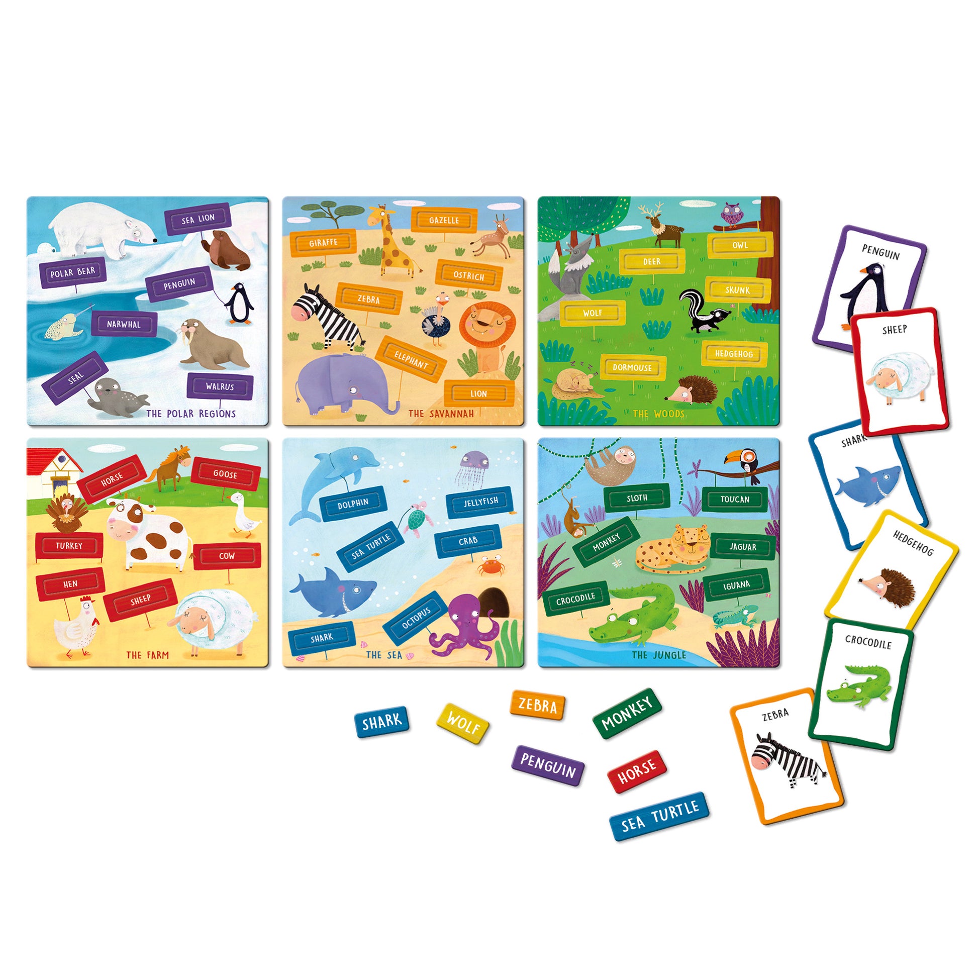 Un juego inspirado en el método Montessori para aprender los nombres de los animales en inglés y descubrir el ambiente en el que viven, aproximándose así́ al concepto de clasificación.